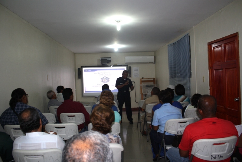 Organizadores de los Programas Preventivos de Seguridad Ciudadana, se dieron cita, en la reunión que realizó la Zona de Policía de Coclé, para llevar a cabo la Rendición de Cuenta de los programas de Vecinos Vigilantes. Más de 36 coordinadores participaron de la reunión, donde se contó con la presencia del capitán David Arroyo, quien manifestó que los programas que lleva la Policía Nacional son con el fin de crear cultura de Seguridad Ciudadana, logrando la convivencia pacífica y la integración de los vecinos, con el objetivo de educar y prevenir el delito. Agradeciendo a los presentes por la colaboración de ellos hacia la Policía, trabajo en conjunto que ha permitido los avances alcanzados en la región en materia de seguridad así como intercambiar ideas para combatir la delincuencia en la región con la comunidad y funcionarios públicos. Por su parte, los Tenientes Fernando Grenald y Mario Ovalle monitores de esta rendición de cuenta expusieron los beneficios que se han logrado con los programas preventivos cuyos objetivos se han logrado y exhortan, para que más sectores se sumen a la gran tarea de combatir la delincuencia y los malos vicios. |