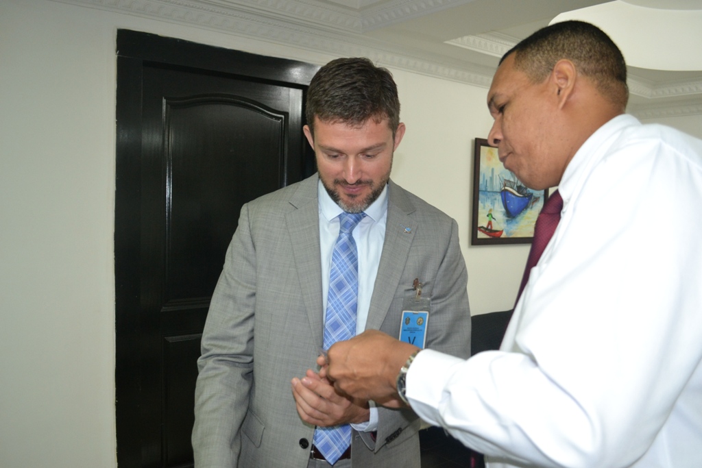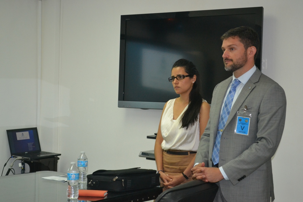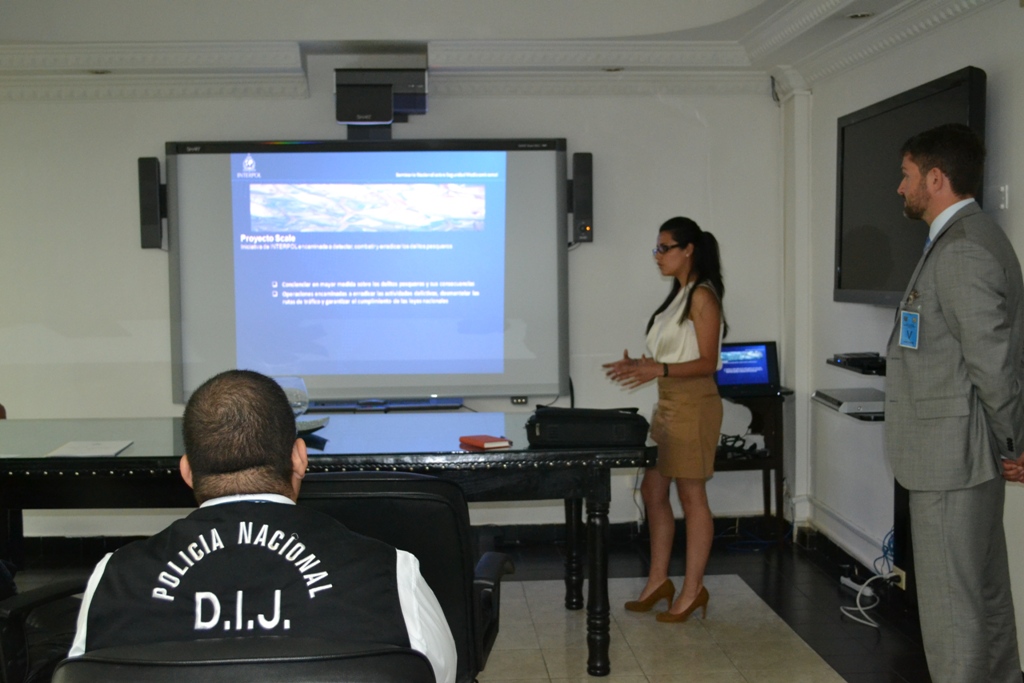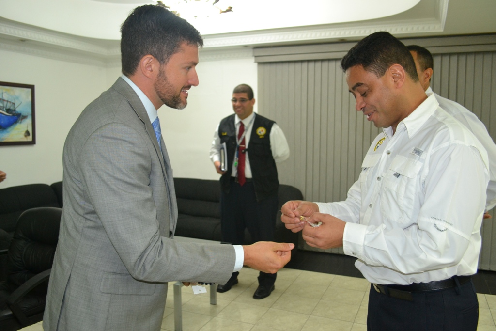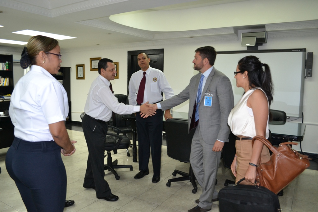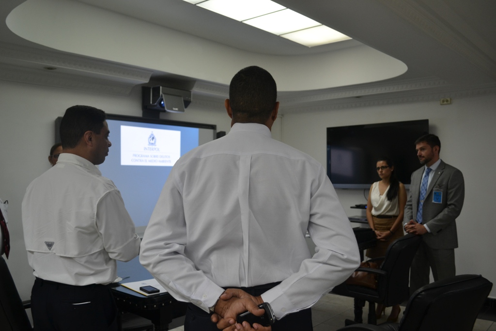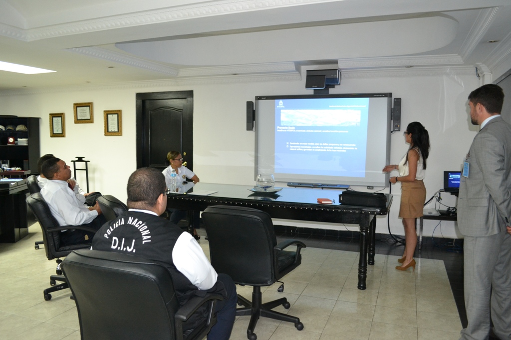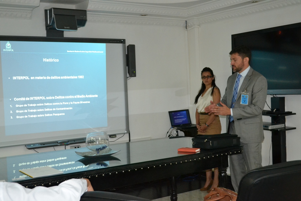 Bradley Soule y Cindy Chimal, ambos miembros del Programa sobre Delitos contra el Medio Ambiente, de la Secretaría General de Interpol, visitaron esta mañana las instalaciones de la Dirección de Investigación Judicial (DIJ). La visita se realizó con el fin de mostrar a los ejecutivos de esta dirección el plan de trabajo que ofrece el programa donde los funcionarios encargados de la seguridad buscan nuevas estrategias y prácticas, para combatir los delitos contra el medio ambiente a escala internacional. El comité estuvo acompañado por la capitana Gloria Silva de la Oficina Central Nacional de Interpol, y recibidos por el comisionado Manuel castillo director de Investigación Judicial, subcomisionado Alexis Muñoz subdirector de Investigación Judicial y el comisionado José Huertas de Investigaciones Criminales. |
