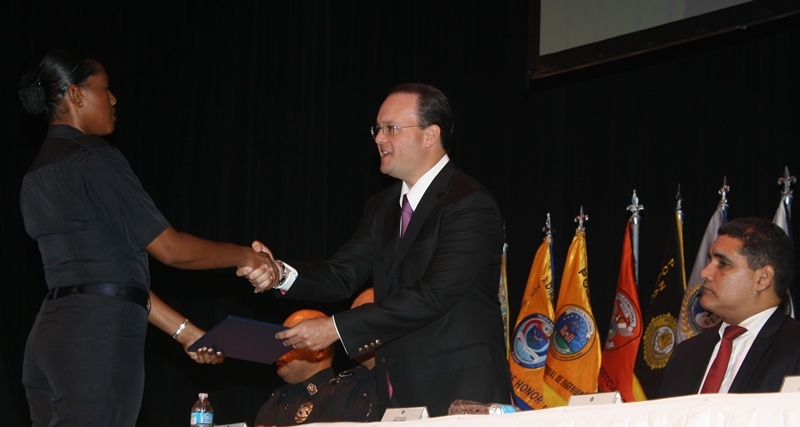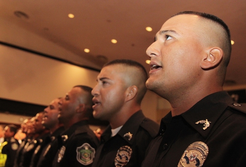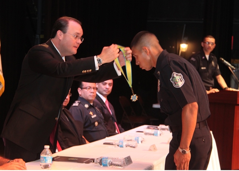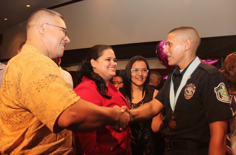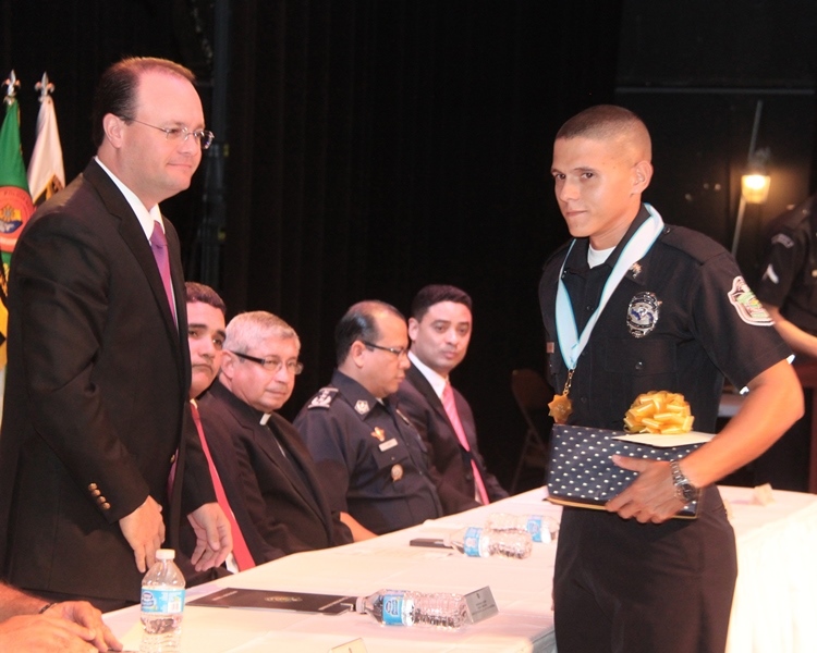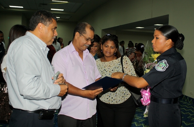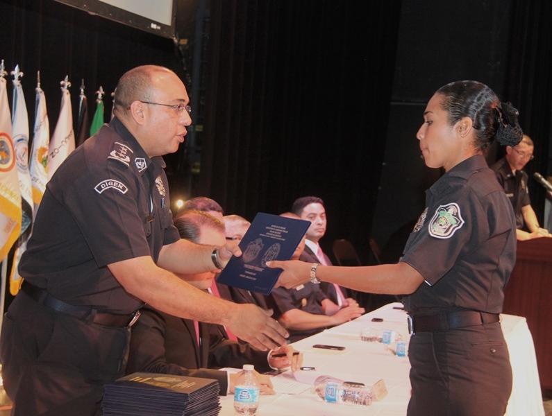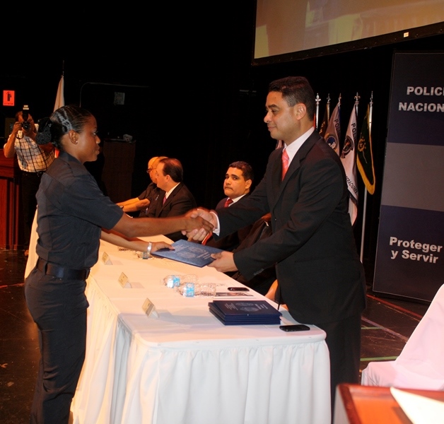 Con el deseo de hacer realidad su sueño de servir a la Patria, unos 125 jóvenes de la sexagésima novena promoción (69) “Cabo2° Post morten Raúl Mata García” recibieron sus certificados que los convierte en nuevos agentes de la Policía Nacional, durante una ceremonia de graduación realizada en el Centro de Convenciones ATLAPA. En el acto de graduación que fue presidido por el viceministro de Seguridad Pública, Manuel Moreno, el director de la Policía Nacional, Julio Armando Moltó y miembros del Directorio Nacional, se destacó el orgullo, honor y valor que caracteriza a quienes, portan el distinguido uniforme policial; cimentado en la vocación de servicio que en ocasiones los lleva a ofrendar sus propias vidas, como es el caso del Cabo2° Post morten Raúl Mata García, quien el 1 de enero de 1991 falleció en cumplimiento del deber y hoy deja un legado de entrega y sacrificio, siendo ejemplo para las presentes y futuras generaciones de policías. La oportunidad fue propicia para rendir homenaje al Cabo2° Post morten Raúl Mata García ante la presencia de sus familiares, a quienes se les entregó una placa, siendo recibida por su hermana, la señora Dalia Matas. También se hizo entrega de medallas al mérito académico y obsequios a los tres primeros puestos de honor; correspondiéndole al agente Andy Lamar Díaz, quien logró el más alto índice; dirigirse a los presentes y en cuyas emotivas palabras incentivó a sus compañeros de promoción seguir adelante, dando lo mejor de sí y dejando siempre en alto la imagen de la Policía. Los recién juramentados uniformados fueron instruidos en la Academia de Policía Presidente Belisario Porras en doctrina y ética policial, seguridad ciudadana, Derechos Humanos, entre otras materias. Este grupo de agentes pasaran a reforzar la vigilancia y otras acciones encaminadas a procurar en disminuir la delincuencia y garantizar la tranquilidad de los ciudadanos. |