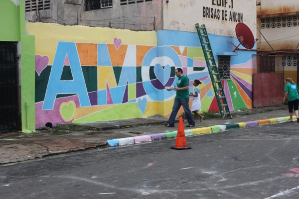 Con la inocencia característica de sus edades y con el recuerdo latente de un pasado violento que aún vive en sus memorias, un grupo de 50 jóvenes, niños y adultos en conjunto con unos 150 voluntarios de diferentes empresas que apoyan la Fundación Palabra y Poder ubicada en calle La Paz, en Santa Ana, plasmaron sobre aceras, paredes e infraestructuras, las vivencias, paisajes y sobre todo expresaron sus sentimientos a través de colores y trazos. Dicha actividad fue apoyada por unidades policiales pertenecientes a la Unidad Preventiva Comunitaria (UPC), el Ministerio de Desarrollo Social (MIDES) y el Fondo de las Naciones Unidas fueron varios meses de preparación lo que se observó en paredes y en la misma calle fue símbolo de una exposición “Pintando la paz”, en la que se exhibe el trabajo y la preparación de estos jóvenes emprendedores. Todos ellos hacen parte del proceso de formación en pintura de la Fundación Palabra y Poder, Tal como lo explica el pastor Iván Richard, los artistas expresaron sus sentimientos a través de los colores y los trazos de sus dibujos que llevan un mensaje de paz y de no violencia en el lugar”. Muchos de los niños que muestran sus creaciones en la exposición han sufrido directa o indirectamente la violencia que se vive en el sitio. No obstante, ellos plasmaron paisajes llenos de paz y armonía, en los cuales se refleja un remanso de tranquilidad. Francisco Solari, uno de los participantes de la actividad, afirmó que le dio rienda suelta a sus recuerdos y a sus sueños al momento de pintar, hoy mira con orgullo parte de la pared que diseñó. "No tengo mucha experiencia, pero varias personas me han dicho que mi dibujo quedó hermoso. Traté en lo posible de reflejar lo lindo que es mi pueblo Santa Ana y decir a través de mi pintura que hoy somos un refugio de paz y cultura", puntualizó. Estaremos haciendo más actividades aquí en el corredor de paz de Santa Ana como se le ha denominado a esta calle, mantener los jóvenes ocupados, minimizar los índices de violencia de la comunidad es nuestro norte expresó el pastor Iván Richard. |
