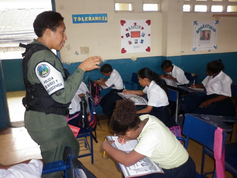 La zona de Policía de Colón a cargo del Subcomisionado Porfirio Justavino, quien dentro de su plan de seguridad a través de la Policía de la Niñez y Adolescencia están llevando a cabo una serie de capacitaciones en una escuela y dos colegios de la provincia de Colón. El sargento primero Luis González y la sargento primero Yanela Ibarra son las unidades de menores que están realizando el trabajo de capacitar a los estudiantes de las escuelas en temas como DARE, GREAT, y el bullyng, en la escuela República de Bolivia, el colegio Simón Urbina y el colegio Instituto Profesional y Técnico de Colón. Los policías de menores capacitan diariamente a más de 300 estudiantes en estos temas con la finalidad de que no sean victima de personas que quieran introducirlos en el mundo de la droga, de las pandillas y que sepan identificar el abuso por parte de sus propios compañeros. Estas capacitaciones se realizan permanentemente en estos tres centros educativos pero también se les da charlas de un día a estudiantes de otras escuelas cuando los educadores los solicitan.