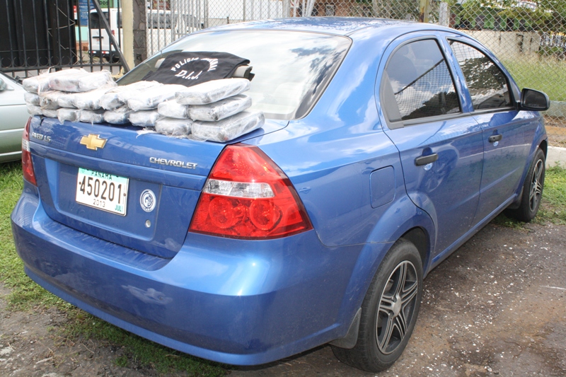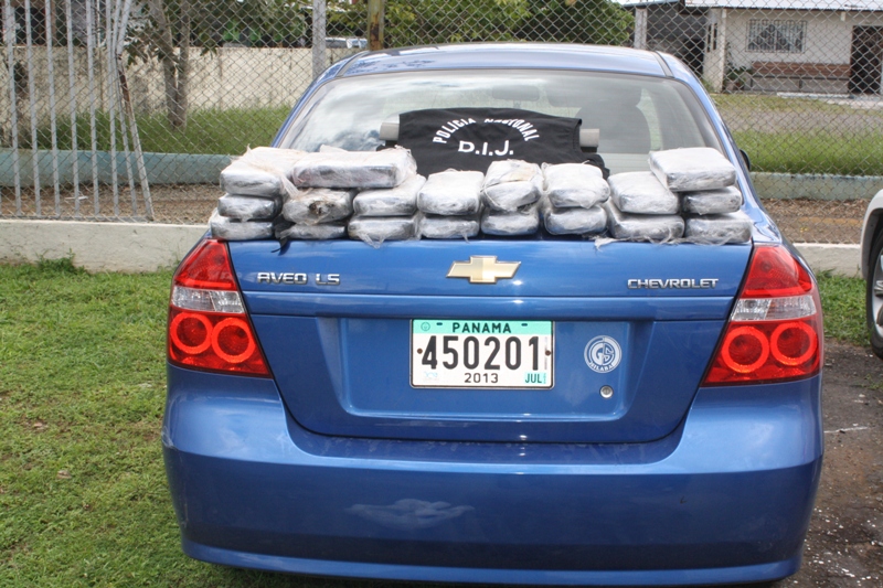 Unidades de la Dirección de Investigación Judicial DIJ de servicios en el Puesto de Control Integral de Guabala, ubicado en Tolé, provincia de Chiriquí decomisaron en horas de la noche de este viernes 9 de agosto, 19 paquetes de supuesta cocaína, que estaban dentro de un vehículo Chevrolet Aveo de color azul metálico y retuvieron a dos personas; entre ellos menor de edad.