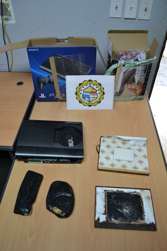 En horas de la mañana y tras un operativo de vigilancia y seguimiento llevado a cabo por Unidades de Narcótico de la Dirección de Investigación Judicial (DIJ) de la Policía Nacional, se logró el decomiso de dos cajas con cocaína en su interior. En el primer caso se detectó dentro de una caja que contenía un PlayStation (video juego) y en el interior del mismo se hallaron dos paquetes de la droga conocida como cocaína envueltos con tape color negro. En el segundo caso se encontró una plancha de la droga conocida como cocaína introducida en la portada de una agenda. El cuadernillo estaba dentro de una cajeta y envuelta en cartuchos. Ambas cajas fueron dejadas en una empresa de envío con destino a México. Las autoridades judiciales iniciaron las investigaciones del hecho, por el momento no hay detenidos. |