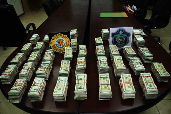 Como parte de las acciones en contra del crimen organizado y narcotráfico, autoridades policiales pertenecientes a la Dirección de Información Policial (DIP), en conjunto con la Fiscalía de Droga, decomisaron medio millón de dólares en la 5 de mayo, además fueron incautados tres vehículos, presuntamente utilizados por los delincuentes, por este caso hay tres detenidos dos panameños y uno de nacionalidad colombiana. La diligencia fue todo un éxito, luego de una llamada anónima que alertara a las unidades policiales sobre un supuesto intercambio de sustancia ilícita, que se iba a dar en los predios de la 5 de Mayo, en el sitio las autoridades incautaron tres vehículos dentro de los mismo se detectó la presencia de dos maletas que en su interior se transportaba parte del dinero. En ambas maletas se contabilizó la suma de B/. 321,710.00 dólares. El descubrimiento del efectivo y la máquina para contabilizar la plata ocurrió cuando personal de la DIP, y la Fiscalía de Drogas, realizaban la revisión a los vehículos, tras el hallazgo la policía inició las averiguaciones previas correspondientes, trasladándose hasta un apartamento ubicado en Calle 50, donde se escondía la suma de B/.116.273.00 dólares. Los detenidos fueron puestos a órdenes de las autoridades competentes, mientras que la policía está tras la pista de otros involucrados. |