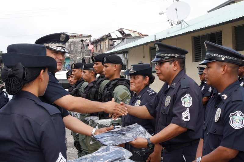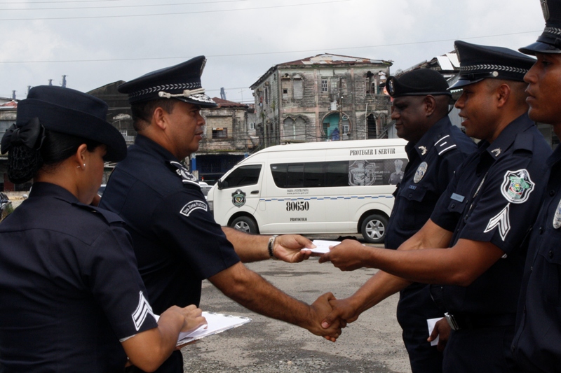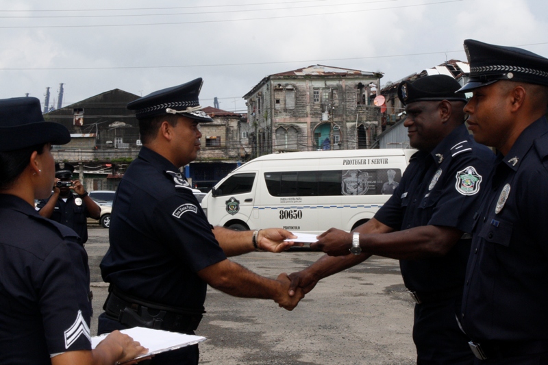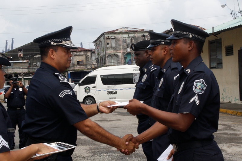 La Zona de Policía de Colón, realizó la mañana del jueves 15 de agosto un acto de reconocimiento donde se les entregó uniforme a las unidades destacadas y a las unidades sobresalientes en su labor de Proteger y Servir a la comunidad. El acto estuvo presidido por el Subcomisionado Néstor Valdés Subdirector Nacional de Operaciones en representación del comisionado Miguel García, Director Nacional de Operaciones de la Policía Nacional. En el acto se le entregaron uniformes a las unidades así como premios al subteniente Manuel Ramos, por acción policial, al cabo primero José Tejada, por disciplina ejemplar y al cabo segundo Elmer Bermúdez, por porte policial, también se le entregó gafete de 25 años de servicio al subteniente Carlos Álveo de servicio en Sabanitas. El subcomisionado Valdés, felicitó a las unidades destacadas en su labor y los exhortó a seguir con ese empeño de cumplir bien la misión y servir de ejemplo a sus compañeros. |