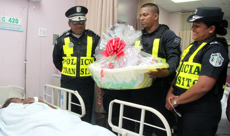 La D.N.O.T (Dirección Nacional de Operaciones del Transito), de la Plicía Nacional en conmemoración de los 44º aniversario, hizo entrega este miércoles 21 de agosto de dos canastillas a los primeros niños que nacieron en el nosocomio del Hospital Santo Tomas, ubicado en la ciudad de Panamá. La comitiva estuvo encabezada por el comisionado Aldo Macre, director de la DNOT y demás miembros de esta dirección que con entusiasmo participaron de esta actividad que lleno de alegría a dos madres de familia. Esta iniciativa forma parte de una serie de acciones que tiene la finalidad ayudar a las familias de los recién nacidos y sobre todo en un día muy importante para D.N.O.T, en la celebración de un aniversario más de “Proteger y Servir” a la comunidad en general en las distintas vías del país. Este tipo de actividades sociales seguirán efectuándose para fortalecer los lazos Policía-Comunidad, y de esta manera minimizar la delincuencia y llevar a cabo todos los programas preventivos en el país. |