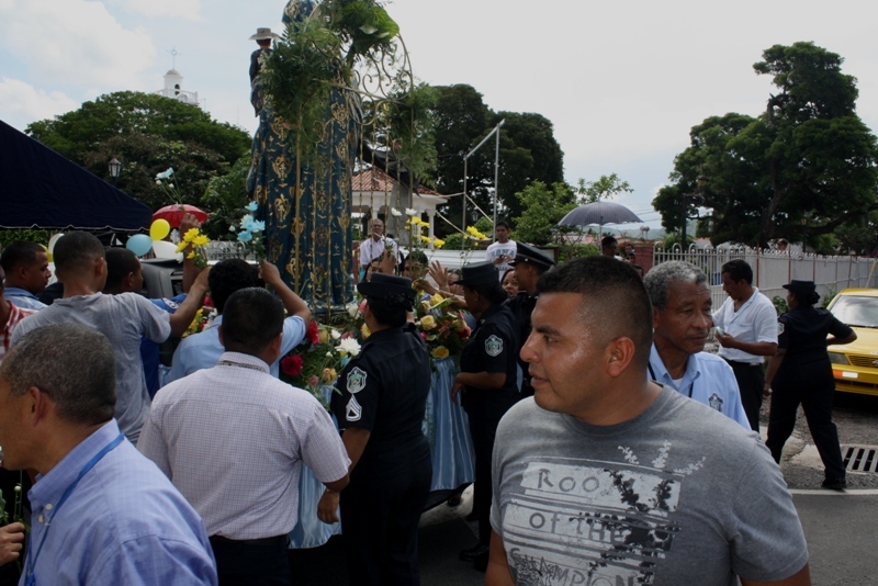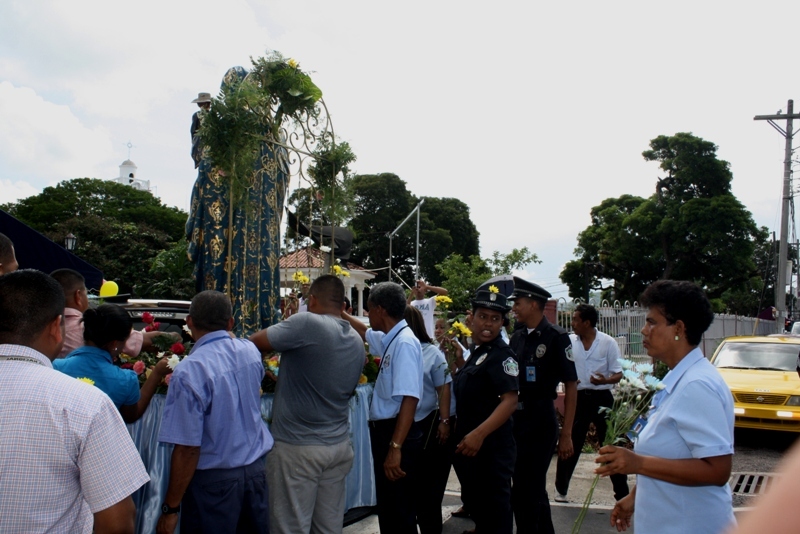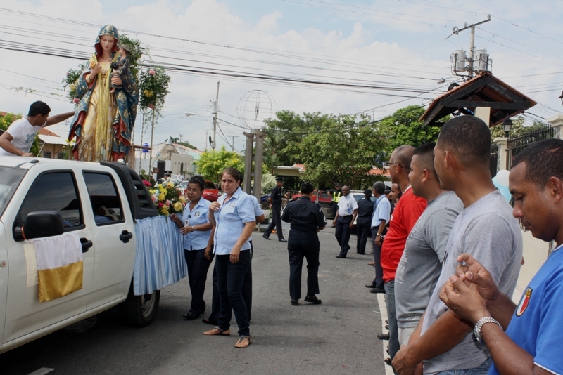 Con un acto solemne, unidades de la Zona de Policía de Coclé dieron la bienvenida a la Patrona de Panamá Santa María La Antigua, quien ha realizado un extenso recorrido por todo el país, conmemorando los 500 años de fundación de la primera diócesis en tierra firme. La misma arribó, este martes 20 de agosto en una caravana a las 9:30 de la mañana en el cuartel sede en Penonomé. Unidades y feligreses se sumaron a la familia policial para participar de la llegada de la imagen de la virgen, quien fue recibida con calle de honor, flores en mano y fuegos artificiales dando muestra de fe y devoción. El capellán de la 2da zona policial, el padre Roberto Cristo Bushell, enfatizó lo importante que ha sido la visita de esta imagen, ella con su abnegado amor lleno de bendiciones y regocijo espiritual a cada una de las personas que se encontraban presentes, el mismo invito para que continúen con ese fervor celestial " Amarnos los unos a los otros y perdonar como Dios nuestro padre lo hizo". |