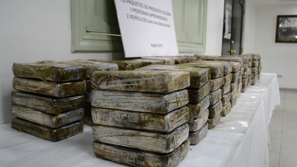 Tras una operación en conjunto de la Dirección de Investigación Judicial (DIJ) y el Servicio Nacional de Fronteras (SENAFRON) se incautan 152 paquetes de la droga conocida como cocaína y se desmantela una banda dedicada al tráfico de estupefacientes en la Provincia de Darién. La operación denominada ‘Tridente’ inició el martes 20 y culminó el jueves 22 de agosto, en el sector de Santa Rosa del corregimiento de Metetí. Durante los tres días de operación las unidades de investigación de ambas instituciones de seguridad realizaron cinco diligencias de allanamientos en diversos puntos de ese sector con el apoyo de la Fiscalía Primera de Drogas verificando dos vehículos, una finca y dos recintos entre ellos un local comercial. Los resultados fueron cinco sujetos de nacionalidad panameña detenidos de entre 20 y 40 años de edad, dos vehículos incautados (marcas Toyota Hilux y Suzuki Vitara) y el decomiso de la sustancia ilícita que se mantenía forrada de cinta adhesiva con el logo de la marca KIA. Cabe informar que uno de los vehículos (Suzuki Vitara) mantenía confección de doble fondo en su interior. De los 152 kilos; 109 fueron encontrados sumergidos en melaza dentro de un tanque plástico de color azul que estaba siendo transportado en uno de los vehículos incautados, mientras que 43 fue hallada en la propiedad de uno de los aprehendidos. |