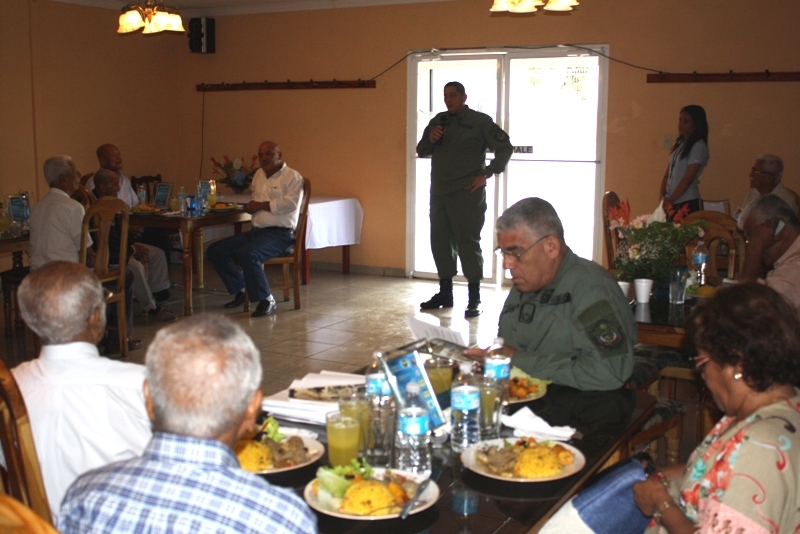 Un reconocimiento a ocho ex miembros jubilados de la desaparecida Guardia Nacional fue realizado en la mañana de este viernes 23 de agosto, en la Zona de Policía de Coclé por el jefe de esta área el Comisionado Miguel Ávila De Los Santos. En este acto se quiso rendir un homenaje a los uniformados jubilados que en la época de los años 60 consagraron sus mejores días al servicio de la patria, dejando plasmada su vocación y firmes legados institucionales ; los cuales deben ser ejemplos para las nuevas y futuras generaciones. El acto que contó con la presencia del jefe de la zona, también de los oficiales el mayor Doryam Espitía Ejecutivo de la zona, el mayor Héctor Wong, jefe del área C de Antón, el mayor Luis Quiel jefe del área B Aguadulce e invitados especiales y familiares. Tanto el comisionado Miguel Ávila, como los jefes de las áreas felicitaron en sus respectivas intervenciones, a los homenajeados y a sus familiares allí presentes, y felicitándoles porque son parte de la historia de la Policía Nacional, dejando huellas de un pasado donde el valor del respeto era valorado no solo por unidades sino por una ciudadanía que con solo escuchar a las 9:00 de la noche el sonido de un silbato, marcaba la hora de estar en casa. Por otro lado, el comisionado les recordó a los reservistas que la sede de la Policía en la provincia de Coclé sigue siendo su casa para todo lo que necesiten. El homenaje culminó con algunas anécdotas del antiguo cuartel de Penonomé, por el historiador y profesor Heraclio Quirós; donde posteriormente los invitados pasaron a un almuerzo que fue del agrado de todos los presentes. |