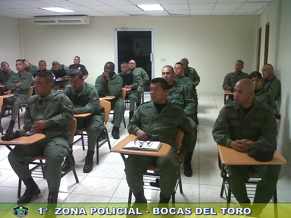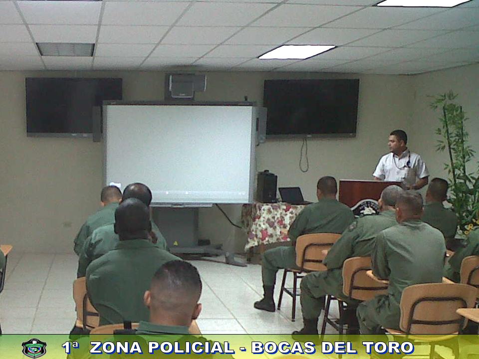 Unidades de la 1ª Zona Policial en la provincia de Bocas del Toro, en horas de la mañana de hoy miércoles, recibieron una capacitación por parte del Licenciado José Santa María, coordinador del Grupo de Alcohólicos Anónimos de Changuinola. A la actividad asistieron 35 unidades del Servicio Preventivo los cuales recibieron la capacitación con el tema “El Alcoholismo y sus Efectos”. Esta actividad estuvo coordinada por el Departamento de Trabajo Social de la 1ª Zona Policial. |