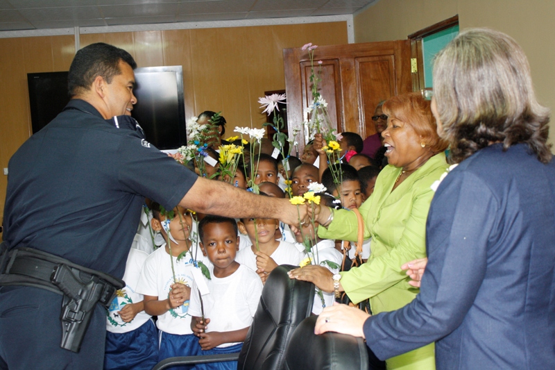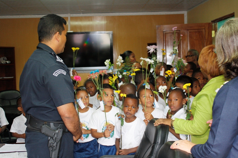 El subcomisionado Porfirio Justavino jefe de la Zona de Policía de Colón, recibió en horas de la tarde de este martes 27 de agosto a estudiantes de la escuela República Oriental de Uruguay. Los estudiantes que cursan los grados de pre kínder, kínder, primero, segundo y tercer, estaban acompañados de sus maestros. La maestra Virginia Niño, directora de la escuela explicó que esta visita la estaban haciendo en varias instituciones gubernamentales y privadas, con la finalidad de promover los valores y entregarle una flor a los trabajadores de las instituciones que visitaban. La maestra Niño también agradeció al subcomisionado por haberle prestado el bus de la institución para realizar el recorrido en las instituciones. Por su parte, el subcomisionado Justavino, felicitó a los educadores por la iniciativa de promover los valores entre los niños y no solo eso, además salir a promoverlo en las instituciones, dando así un ejemplo de civismo, también señaló que cada vez que se realicen este tipo de actividad la Policía les brindará su apoyo.