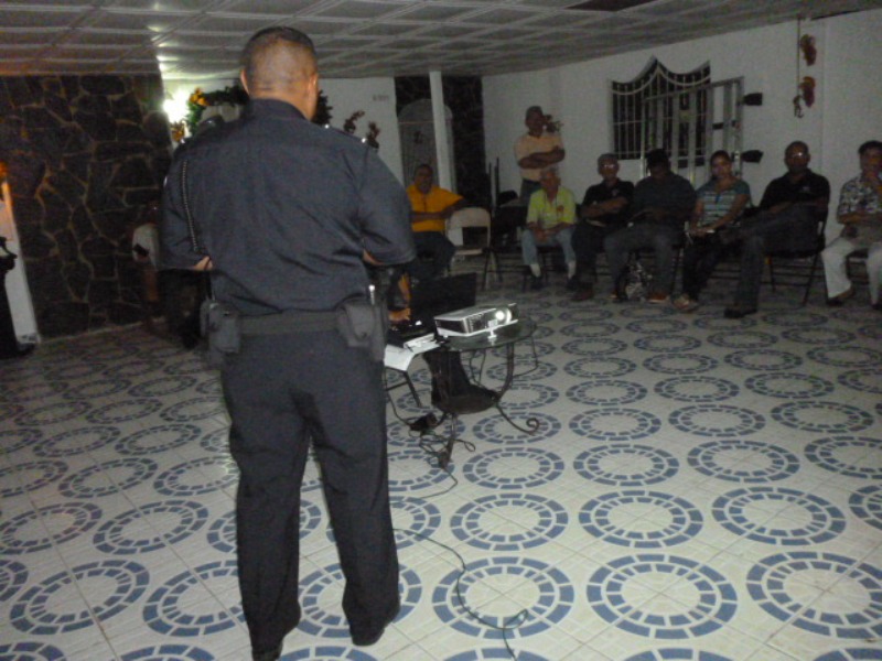 Unidades de la Zona Policial de Arraiján realizaron este jueves 29 de agosto la Rendición de Cuentas a comunidades pertenecientes al programa de Vecinos Vigilantes con el objetivo de dar a conocer las distintas actividades administrativas y operativas que realizan los uniformados en este distrito. El evento se dio, en la residencia de la familia Bernal, ubicada en la barriada Altos de Nuevo Arraiján y fue presidida por el Subcomisionado Gilberto Cuevas, Jefe de la Treceava Zona Policial quien estuvo acompañado del Mayor Ignacio Taylor de la DIJ y Subteniente Nelson Ruíz de la DIP. El Subcomisionado Cuevas hizo una presentación de las distintas actividades que realizan las unidades de esta Zona Policial y habló de las estadísticas en forma general del distrito e hizo comparación de los delitos de mayor impacto con el año 2012 al 2013. Una vez finalizada la presentación, los integrantes de Vecinos Vigilantes tuvieron la oportunidad de intercambiar opiniones e ideas para llevar a cabo otros programas que contribuyan a beneficiar a la población arraijaneña.