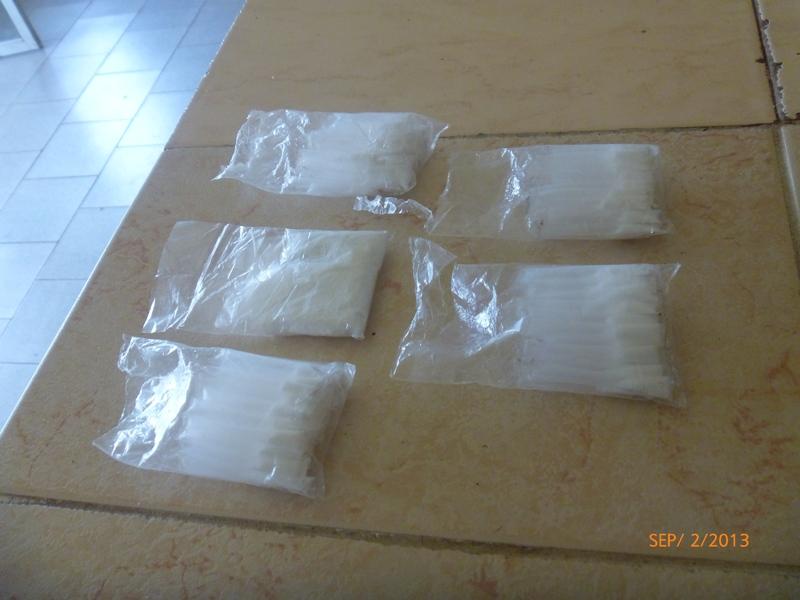 De acuerdo a las investigaciones las unidades realizaban un recorrido a pie en el área y se encontró una bolsa de color azul, al ser verificada en su interior mantenía 4 bolsitas de plástico transparente con 30 pedazos de carrizos plásticos sellados por ambos lados que en su interior se observa un polvo blanco que se presume sea droga.