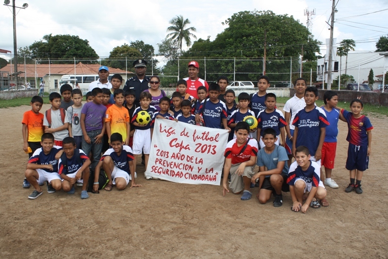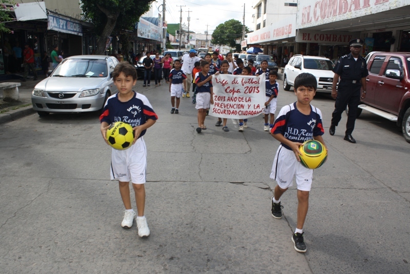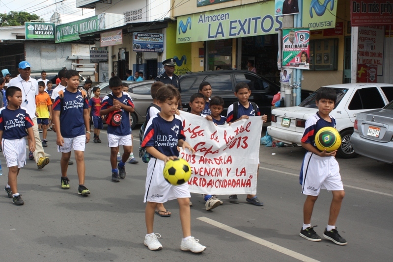 Unos 60 niños entre los 8 y 12 años de edad participan desde este lunes 2 de septiembre de la liga infantil de futbol Prevención y la Seguridad Ciudadana, Copa 2013 la cual es organizada por el departamento de Seguridad Ciudadana de la Zona de Policía de Coclé. La Policía Nacional en coordinación con el Instituto Panameño de Deportes (PANDEPORTES) dieron inicio a este programa, con una caminata por la avenida central y el área del Mercado Publico en Penonomé, hasta culminar en el cuadro de mini futbol a un costado del Tribunal de Justicia, donde se dio por inaugurada la liga con 4 equipos participantes de los distintos barrios del distrito. Esta actividad conto con la presencia del teniente Fernando Grenald, el sargento Jesús Ibarra, el señor Oriel Martínez de PANDEPORTES, los pequeños deportistas, padres de familias, público en general que se dieron cita en la apertura. Por su parte, el Comisionado Miguel Ávila de Los Santos, recalcó que estas actividades son bien importantes para el desarrollo, formación de estos niños; contribuyendo a la utilización del tiempo libre de vacaciones. El objetivo de la Policía, más que una interacción con la sociedad es un compromiso de llevar el mensaje a esta población infantil de responsabilidad y sentirse seguros de pertenecer a estas actividades que los alejan de los malos vicios. |