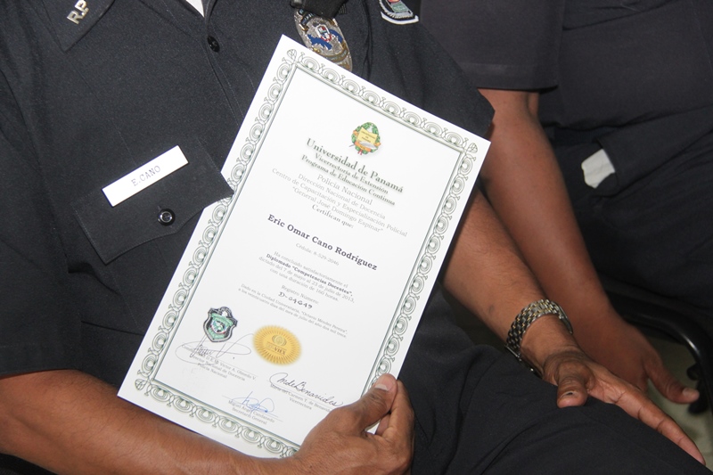 Un total de 30 funcionarios conformados por miembros de la Policía Nacional, el Servicio Nacional Aeronaval y Miembros No Juramentados de la Policía Nacional, culminaron el Primer Diplomado de Competencia Docente. Este curso que se llevó a cabo en el Instituto Superior Policial, estuvo conformado por nueve módulos de enseñanza distribuidos en tres meses de preparación profesional, nos explicó la Capitana María Gutiérrez, encargada del Centro de Capacitación y Especialización Policial. Este diplomado se realizó con el objetivo de capacitar a los docentes y prepararlos para dictar los diversos tipos de materias y especialidades policiales con miras a lograr el desarrollo físico, intelectual, académico y tecnológico que debe obtener un policía moderno al servicio de la comunidad. |