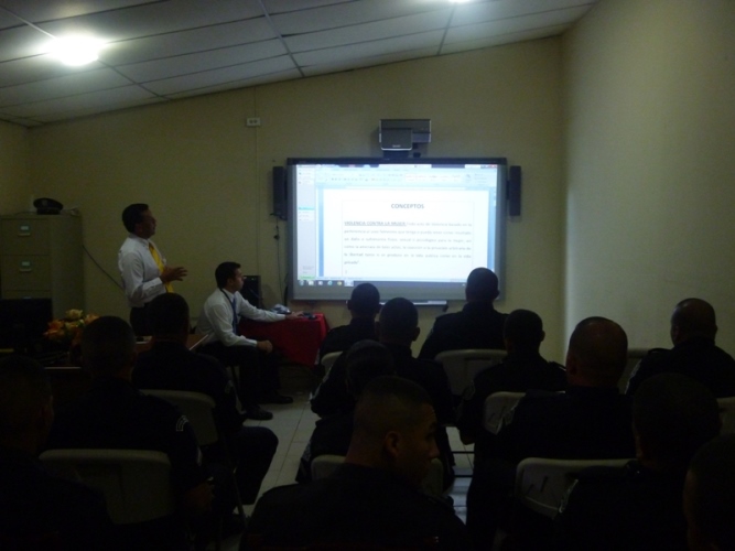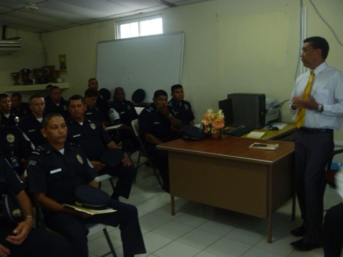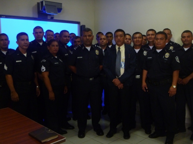 La Séptima Zona de Policía de Los Santos, en coordinación con la Fiscalía de Familia, llevó a cabo la capacitación, durante una semana, al pie de fuera policial, cuyo tema fue “Ruta para la Atención Policial de Caso de Violencia Domestica y Género”, dictada por el Lic. Víctor Yiori, quien funge en la Provincia de Los Santos como Fiscal de Familia. Las unidades policiales recibieron las instrucciones con mucho interés, teniendo como finalidad el poder perfeccionar su desempeño dentro del campo laboral, de igual manera ser mas profesionales en su área de trabajo. Toda esta capacitación se da por el interés del Subcomisionado Cogley de que el personal bajo su mando se capacite para beneficio y mejor atención a la comunidad. El subcomisionado Cogley le hizo entrega de pergamino en agradecimiento al Lic. Yiori. |