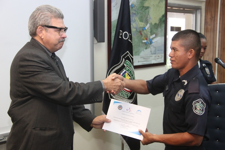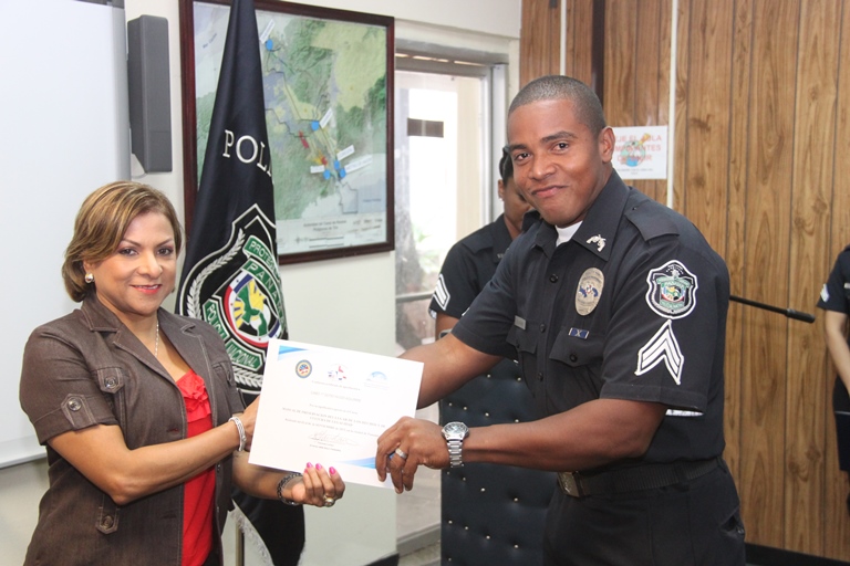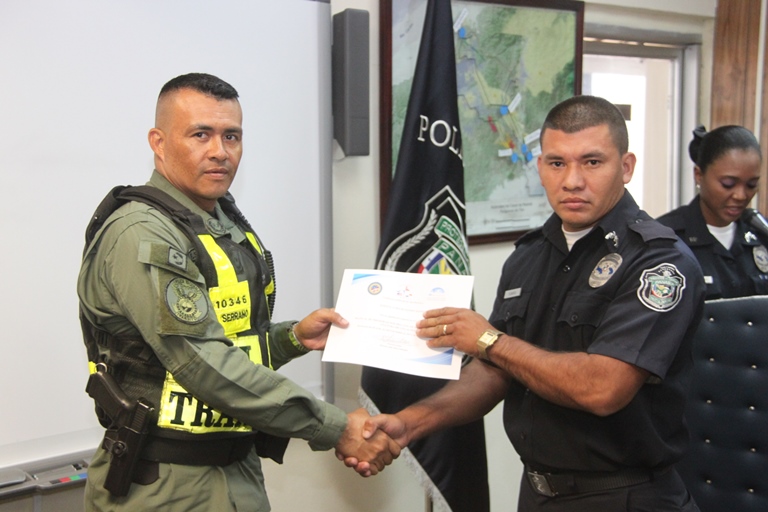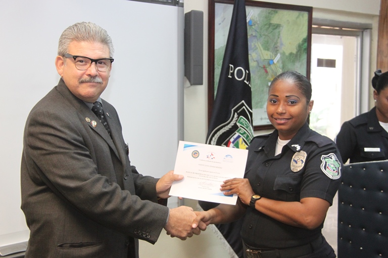 La Policía Nacional dentro de su misión de ser una institución vanguardista en constante desarrollo profesional y tecnológico, mantiene una serie de seminarios a sus integrantes para instruirlos y capacitarlos a fin de que asimilen su nuevo rol de cultura de legalidad que exige el Sistema Penal Acusatorio. La licenciada Waleshka Ormechea, de Reformas Judiciales del Programa Aba Roli explicó que este es un apoyo que da la Embajada de Los Estados Unidos a través de la Secretaría de Asuntos Antinarcóticos y Aplicación de La Ley a la Policía Nacional en Capacitación sobre la Protección y Preservación del lugar de los hechos, un programa que ya tiene alrededor de tres años y ha capacitado unos cuatro mil policías. Este curso se dictó específicamente para los Policías de Tránsito, toda vez que tienen una participación como Primer Interviniente en los casos en donde puede resultar una persona con lesiones graves que llegan a la categoría de delito. Busca también darle a los Policías de Tránsito las herramientas, para cuando les corresponda levantar los indicios en la escena, recogerlos de la mejor manera y reunir los requisitos que exige el Instituto de Medicina Legal en el momento en que se pueda convertir en delito la conducta inicial En tanto el Mayor Franklin Serrano, Supervisor Metropolitano de la Policía de Tránsito sostuvo que se desea que las unidades estén anuentes a la nueva aplicación del Sistema Penal Acusatorio que actualmente se está implementando en el interior de la república. Es un sistema garantista que busca en todo momento preservar los derechos de los imputados y de las víctimas, comentó Serrano. Igualmente resaltó que se desea que las unidades del tránsito, que son las primeras unidades que van a intervenir, tengan el conocimiento de cómo se debe acordonar un perímetro y preservar las evidencias, embalarlas y rotular los indicios para hacerlos llegar a una cadena de custodia.