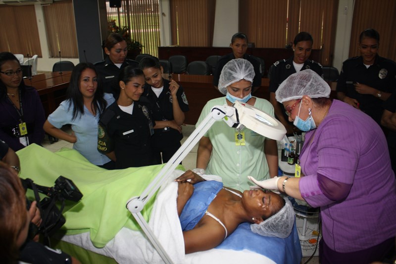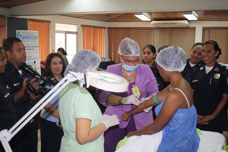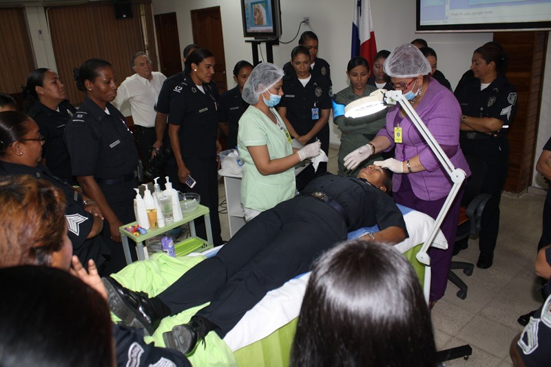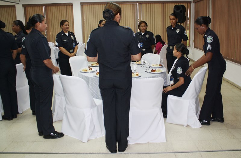 Unas 60 uniformadas de servicio en las diferentes zonas policiales participaron del taller sobre Imagen y Etiqueta, organizado por la Dirección Nacional de Operaciones (DINOP) de la Policía Nacional en celebración de sus ocho años de aniversario. Las asistentes fueron instruidas sobre los cuidados necesarios de la piel y los últimos tratamientos estéticos, orientadas por la esteticista Amada Quevedo de Padilla; quien junto a su equipo de profesionales del Centro Médico y Spa Shaddai atendieron todas las dudas y les ofrecieron consejos al respecto. Además, tuvieron la oportunidad de realizarse algunos de estos tratamientos de manera gratuita. También aprendieron la manera correcta de maquillarse con los tips de las maquillistas de la empresa Feduro, Mileika Ruiz y Clementina Muñoz. El taller finalizó con las lecciones de etiqueta y buenas maneras en la mesa conducidas por la subteniente Ilka Cedeño, del departamento de Protocolo, e incluso las uniformadas practicaron lo aprendido. Las participantes recibieron perfumes, estuches de maquillajes, bonos para limpiezas entre otros premios a los que se hicieron acreedoras. Por su parte, el comisionado Darío Díaz, la subcomisionada Aida Villarreal y la Mayor Cheila Cedeño de Wong expresaron la satisfacción de la DINOP de realizar estas iniciativas que tienen como propósito educar y brindarles a las damas de uniforme las herramientas que les ayuden a mejorar su imagen y autoestima.