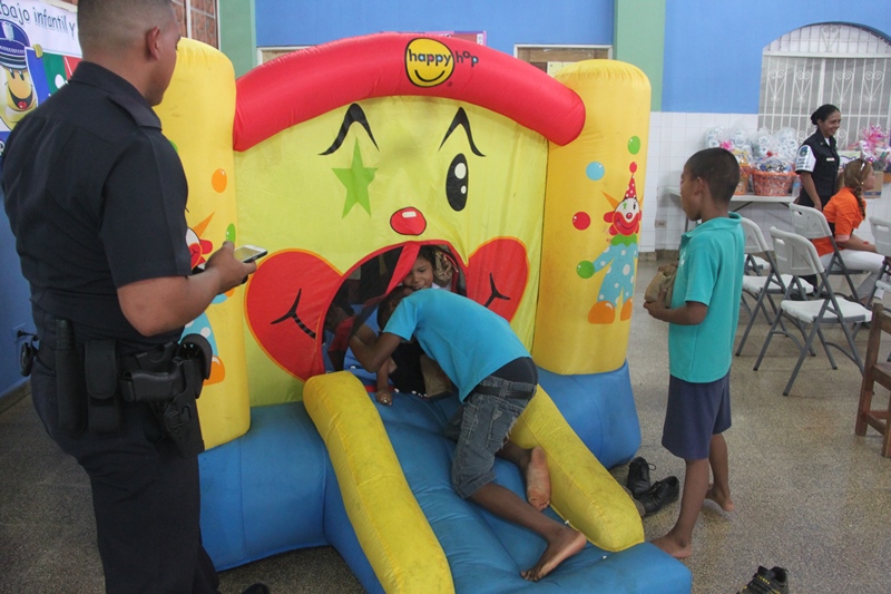 La Dirección Nacional de Operaciones de la Policía Nacional, en su 8º aniversario se trasladó hasta el área este de la capital, donde compartieron con los niños y adolescentes del Centro Metro, ubicado en Tocumen, estos recibieron una grata visita de las unidades policiales en este caso de la Policía de la Niñez y Adolescencia de San Cristóbal. Se trató de una fiesta de cumpleaños para todos los pequeños que se encuentran en este albergue, aproximadamente 60 niños y niñas de este centro participaron del agasajo. Las unidades policiales llegaron cargados de sorpresas entre ellas, una donación de implementos de aseo para el sitio, artículos de cumpleaños para celebrar el 8º año de la DINOP, se observaron canastitas, dulces, pinta caritas, payasos, máquinas de popcorn, además de la presencia de las unidades caninas quienes amenizaron la velada; los pequeños quedaron fascinados con la presentación de los canes. Los presentes disfrutaron de las sorpresas que les ofrecieron los uniformados, pasaron un momento inolvidable y divertido, disfrutaron de la celebración preparada con mucho amor y entusiasmo para todos ellos. Al evento acudieron el subcomisionado, José Ortega jefe de la Zona de Policía Metropolitana Este, la mayor, Alma Vega, y demás compañeros de trabajo. |