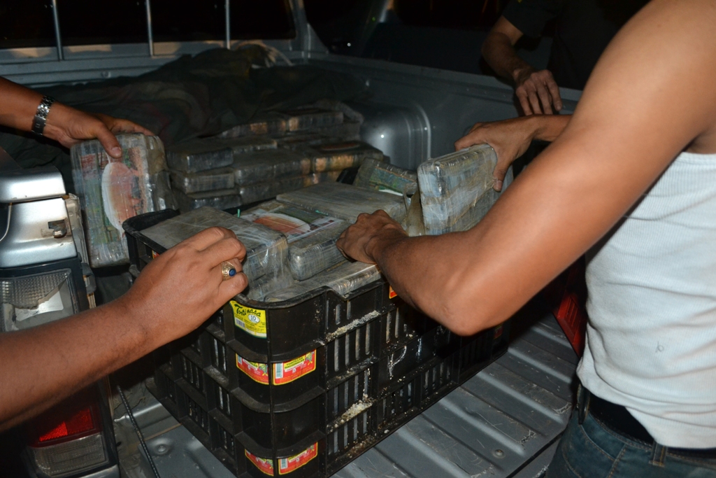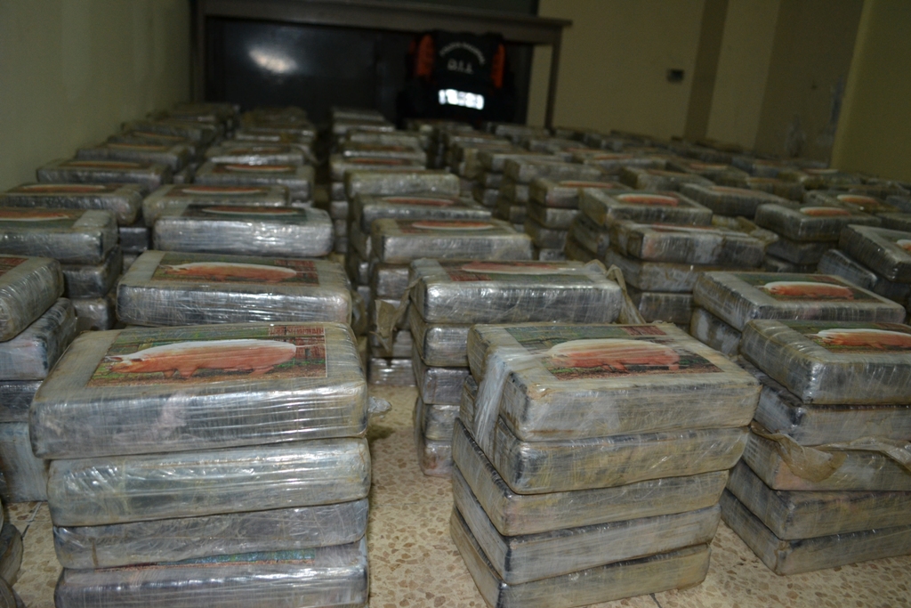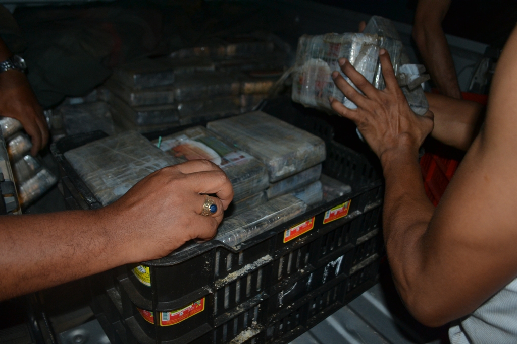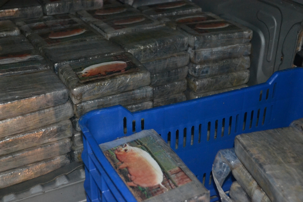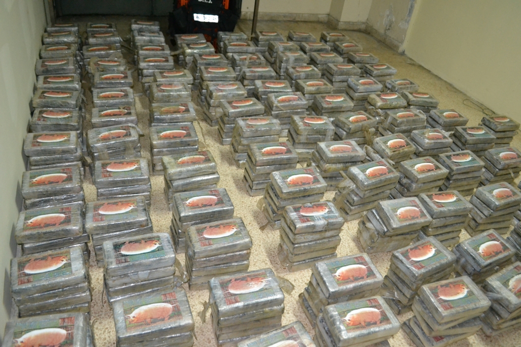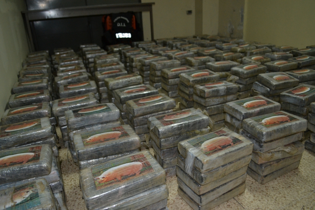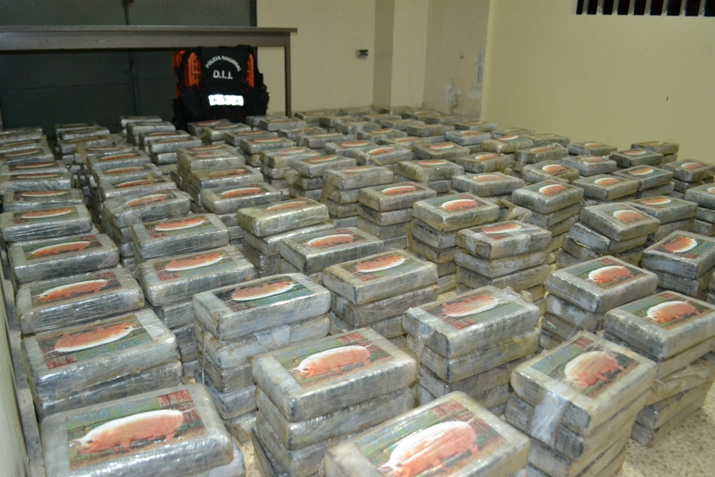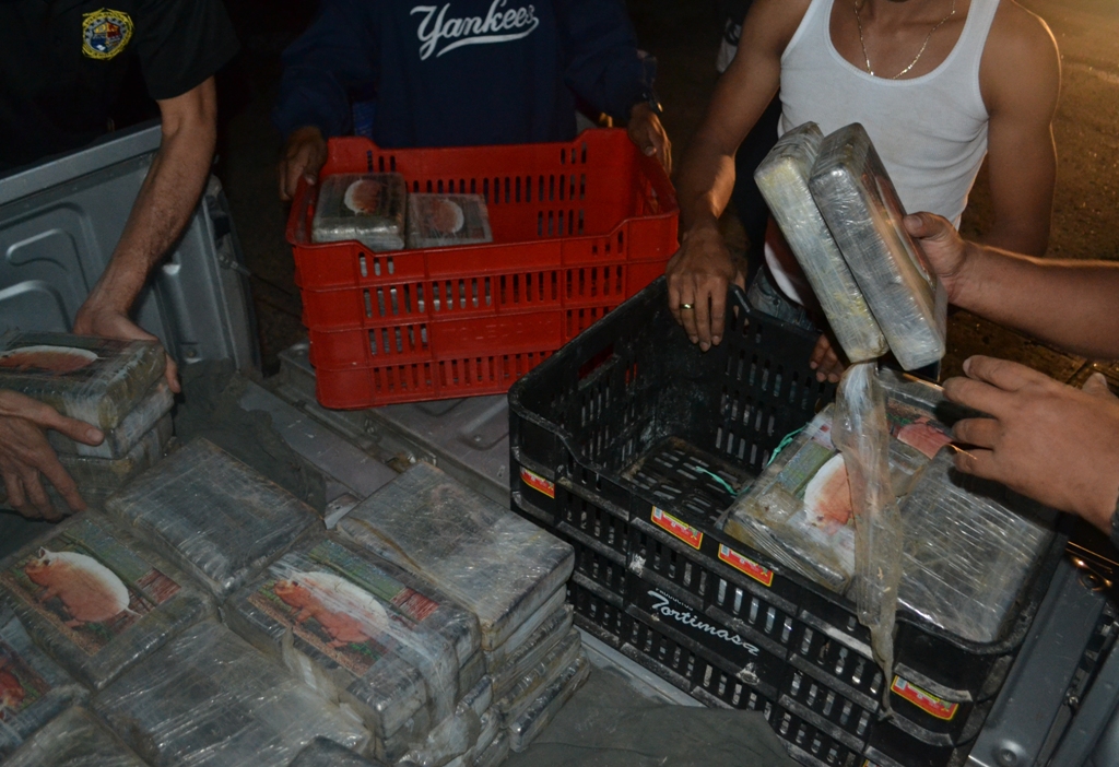 La madrugada de este viernes 13 sorprendió a un grupo de sujetos que pretendían pasar desapercibidos con un cargamento de sustancias ilícitas introducidas en un doble fondo del camión donde viajaban. Fue en el sector de Nuevo Arraiján del distrito de Arraiján donde unidades de Narcótico de la Dirección de Investigación Judicial (DIJ) a través de una operación de vigilancia y seguimiento denominada ‘Muralla’ intervinieron dos vehículos que se mantenían dentro de un taller. Un vehículo - remolque y un camión color blanco marca Isuzu. Al momento de verificar los vehículos y las personas abordo, estas mostraron resistencia a la revisión del camión alegando que estaba vacío y que mantenía daño mecánico. Ante esto las unidades y el personal de la Fiscalía Especializada en Delitos Relacionados con Droga que acompañaban el operativo procedieron a observar el interior del furgón. En la parte superior del mismo no mantenía ningún tipo de carga, sin embargo al inspeccionar minuciosamente el chasis del vagón las unidades de inteligencias se percatan que había una modificación con doble fondo. Dentro del mismo se encontraron 500 paquetes de tamaño regular forrados con cinta adhesiva color chocolate y marcado con la imagen de un cerdo que contienen cocaína. Por este caso se detuvo a nueve (9) personas todos del sexo masculino y de nacionalidades panameñas de edades entre 25 a 47 años de edad. La Policía Nacional informa que en este caso se vieron involucrados dos miembros de esta institución, los mismos serán puestos a órdenes de las autoridades judiciales igual que los demás aprehendidos. La Policía Nacional reitera que este tipo de actividades ilícitas no son aceptadas en las filas de esta institución por lo que reprocha la acción y se ofrece a colaborar con las investigaciones que inicien las instancias legales. |