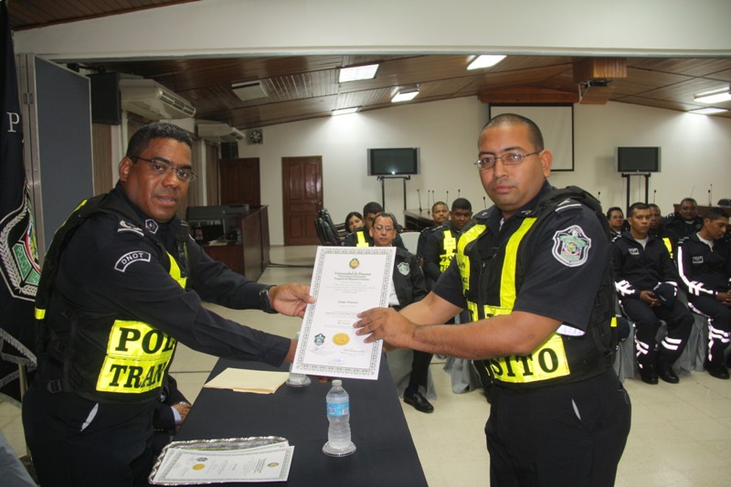 La Policía Nacional en conjunto con la Vicerrectoría de la Universidad de Panamá, clausuraron un Diplomado en Accidentología Vial cuyo objetivo fue la especialización en la investigación en accidentes de tránsito de una manera técnica y profesional en el marco de la implementación del Sistema Penal Acusatorio en la república de Panamá. En este Diplomado participaron un total de 25 unidades desde los rangos de agente hasta Mayor, quienes laboran en la Dirección de Operaciones de Tránsito cuyas funciones incluyen la prevención de accidentes, la regulación del flujo vehicular además de la verificación del cumplimiento de las normas y leyes de tránsito. Los estudiantes recibieron materias como Dibujo Técnico en donde se les enseñó la confección de diagramas de accidentes de tránsito por medio de computación así como el análisis pericia para verificar en el terreno todo lo concerniente a los accidentes vehiculares. El Arquitecto Aníbal Figueroa Quiroz de Educación Continua de la Vicerrectoría de la Universidad de Panamá, opinó que esta es una actividad promovida por la Policía Nacional y la Universidad de Panamá en un esfuerzo conjunto que va a derivar en muy buenos resultados. Por su parte, el Comisionado Aldo Macre, Director Nacional de Operaciones de Transito explicó que se está clausurando el Primer Diplomado de Accidentología Vial, nivel básico en coordinación con la Universidad de Panamá ampliando que La Vicerrectoría de extensión es la que le da seguimiento a lo que es la educación continúa. Este tipo de educación que se da dentro de cada una de las áreas tratando de transportar esos conocimientos de generación en generación. Añadió que se han sentado con la Universidad de Panamá para diseñar lo necesario para un Diplomado en Accidentología Vial, pero a nivel Básico para que exista un segundo nivel avanzado y una vez se hayan combinado los dos se cree un titulo de Maestría en Accidentología Vial. |