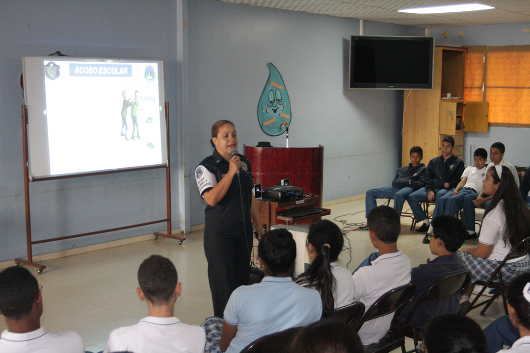 Unidades de la Policía de Niñez y Adolescencia dictaron una charla contra el acoso escolar o bullying, a un grupo de estudiantes del Instituto Episcopal San Cristóbal, quienes pudieron evaluar de primera mano, los elementos que se involucran en este tipo de situaciones y las herramientas necesarias para combatirlo. El bullying es considerado una especie de acosamiento que incluye la intimidación de los estudiantes, mediante el maltrato psicológico, físico y verbal. El licenciado Gustavo Gorrichategui psicólogo del centro educativo expresó que el objetivo de invitar a la policía para que dicte este tipo de charla es para reforzar el monitoreo de la conducta de los estudiantes por parte de las autoridades y de los educadores e invitar a los padres de familia que lo hagan dentro de sus hogares. La ubicación y definición del conflicto, así como la comunicación efectiva con los niños y adolescentes, son dos de las herramientas fundamentales para detectar y combatir este flagelo que actualmente se está dando en muchas escuelas dentro y fuera del país. Estas actividades se dan como parte de los programas de acercamiento que lleva a cabo la institución con todos los adolescentes del país, con el objetivo de dar a conocer la misión fundamental de Proteger y Servir. |