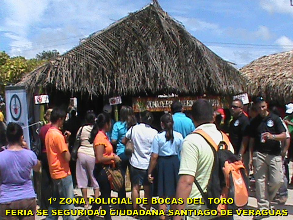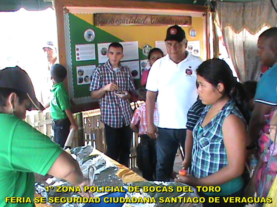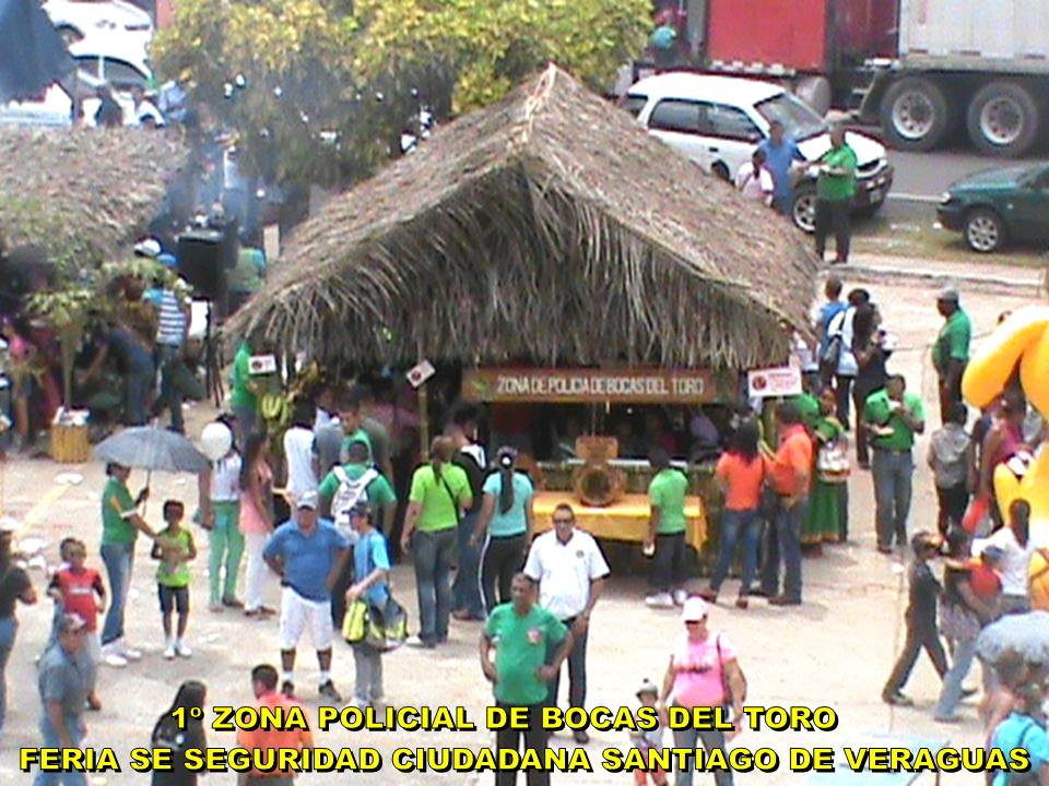 La 1º Zona Policial de Bocas del Toro participó este sábado 14 de septiembre de la Feria de Seguridad Ciudadana 2013, en su cuarta versión 2013, la cual se realizó predios del Estadio Omar Torrijos Herrera en la provincia de Veraguas. Para este año Bocas del Toro llevó a sus visitantes la tradicional sopa Bocatoreña conocida como Rondón, las empanadas patí y plantintá, arroz con coco Bocatoreño como también banano y verduras cultivadas en la regios. Con solo visitar el rancho de la 1ª Zona Policial usted podía disfrutar de cualquiera de estos platos como también llevarse un gajo de bananos para su casa y disfrutar de la música que alegra el alma y deleita el corazón como lo es el Calipso en vivo. De igual forma, se exhibieron pequeñas maquetas que deban a conocer las herramientas que utiliza el Programa Vecinos Vigilantes para la protección de los ciudadanos. El Comisionado Javier Castillo, Jefe de la 1º Zona Policial promete para el próximo año llevar más sabor Bocatoreño a la próxima Feria de Seguridad Ciudadana. |