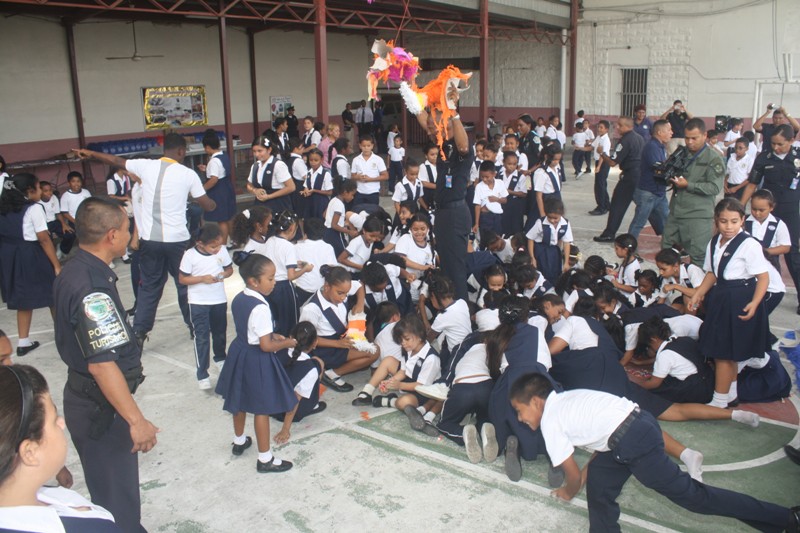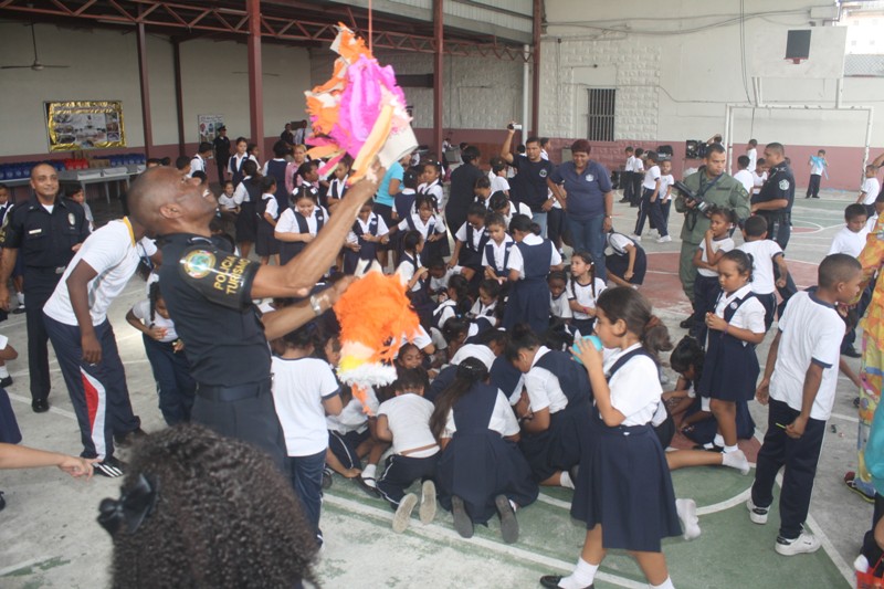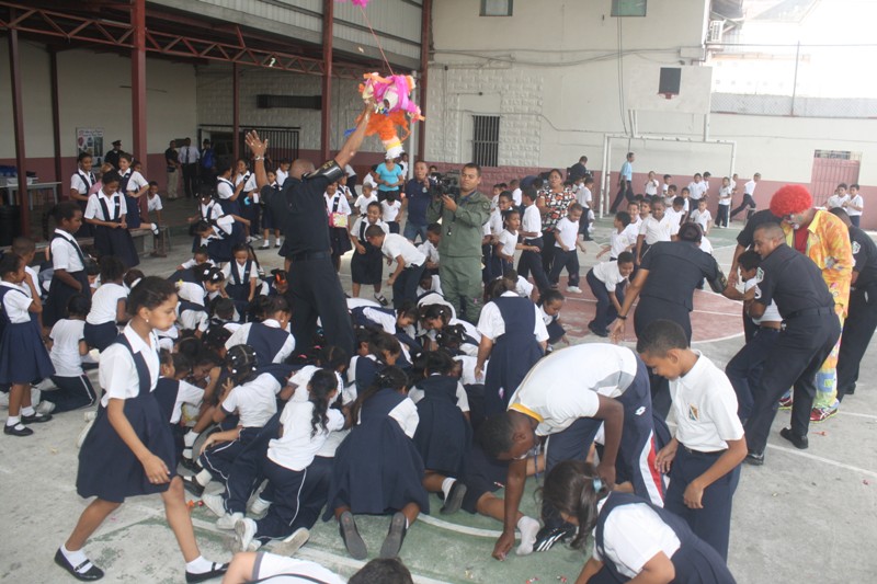 Más de 200 niños del Hogar de la Infancia Divino Niño Jesús, ubicado en el sector del Terraplén del corregimiento de San Felipe, fueron agasajados por diversos componentes de la Policía Nacional con motivo de la conmemoración del Día Internacional de Turismo y con miras a fortalecer los lazos de amor, afecto y amistad con estos humildes niños. La Subcomisionada Cynthia Meneses, Jefa de la Policía de Turismo explicó que el propósito de esta actividad es la de intercambiar ideas y experiencias así como estimular a los niños con un buen ejemplo para que mañana sean hombre y mujeres de bien. “Deseamos que desde temprana edad, estos niños vean que el Policía es su amigo, a fin de que vayan solidarizándose con la labor de seguridad, tan importante para toda la sociedad panameña e incluso, para que también vean la institución policial como una proyección que a largo plazo, puede constituirse como una opción y una meta laboral. En esta actividad participaron unidades de la Policía Canina; la Policía Comunitaria quien aportó la presencia de payasos; además de la Dirección de Información Policial que a través de un mago hizo la delicia de grandes y chicos y la Dirección de Operaciones de Tránsito que brindo interesantes charlas de Educación Vial. Sor Lucy Cabrera, informó en tanto que este Hogar mantiene un grupo de 215 alumnos, entre los que se encuentran 30 niños internos, de bajos recursos, procedentes de sectores como El Chorrillo, Santa Ana, San Miguelito y la provincia del Darién además de diversos sectores indígenas a los cuales se les imparten valores, principios y el querer vivir en sociedad. |