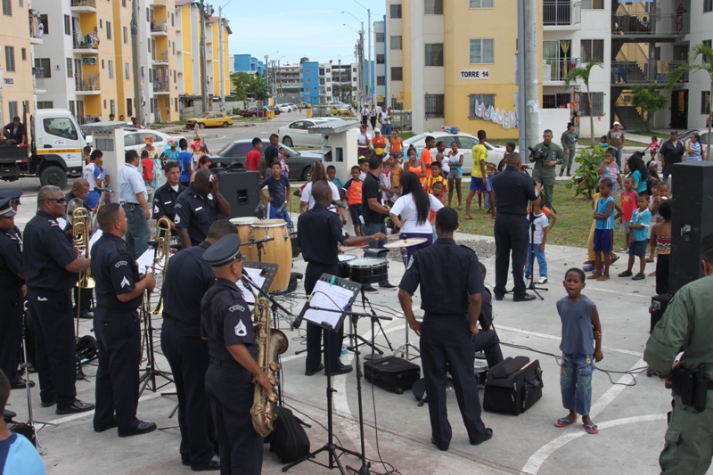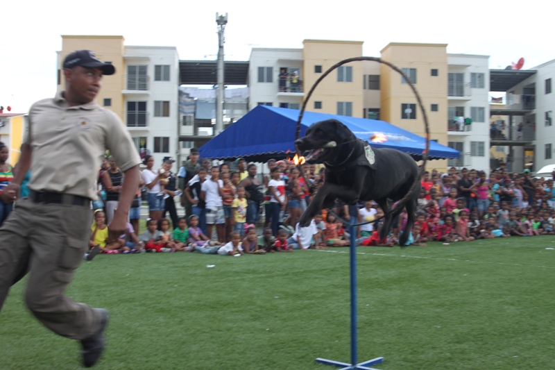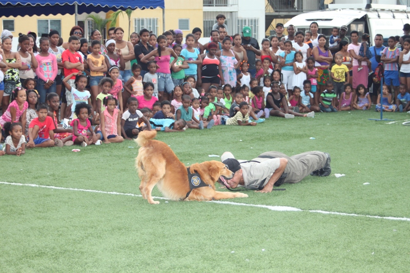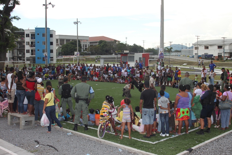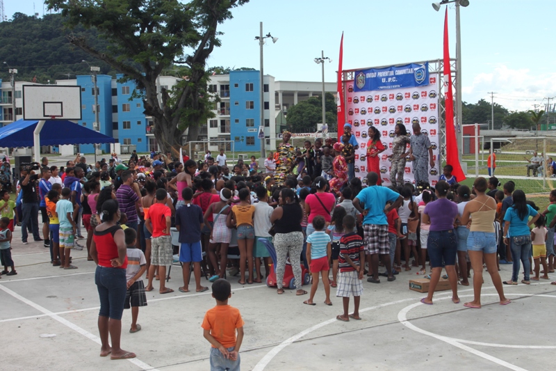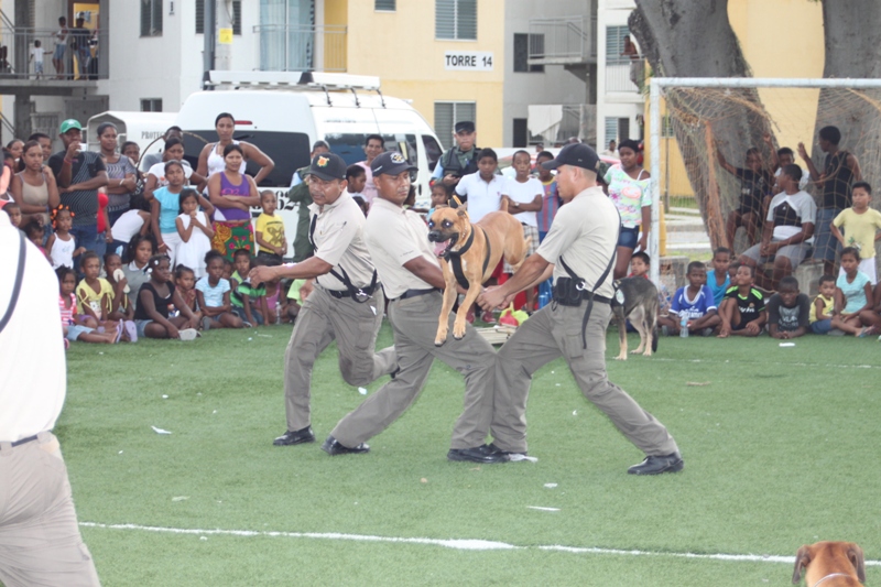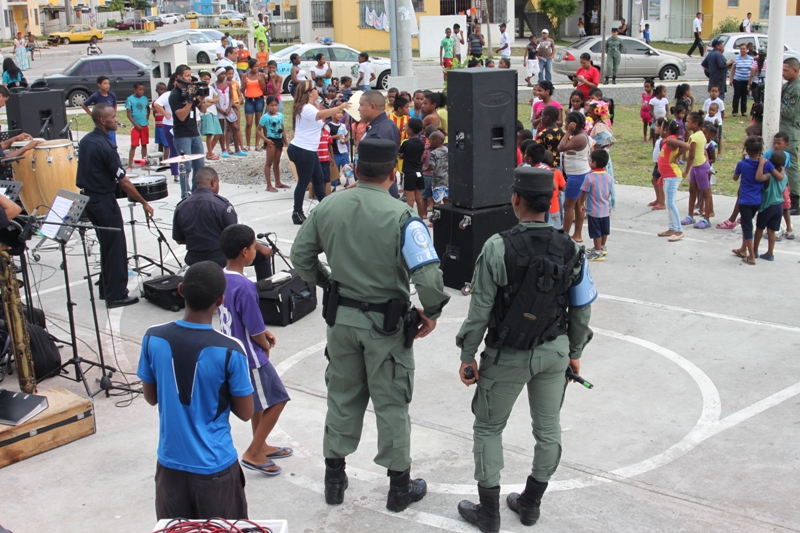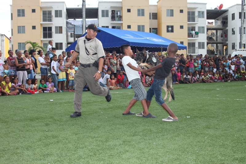 Una “Tarde de Talentos” en la que se mostró la cara artística de los residentes de Curundú, fue la actividad organizada por la Unidad Preventiva Comunitaria (UPC) de la Policía Nacional y el Ministerio de Educación, en la que se vieron sorpresas y se vivió un rato agradable con los asistentes, culminando de una manera especial la semana. La Orquesta de la Policía alegró el ambiente, con sus notas al ritmo de la pegajosa salsa; mientras que los canes de la Unidad Canina arrancaron la admiración y los aplausos de los chicos y grandes, que observaron atentos las acrobacias bien llevadas bajo la guía de sus entrenadores. Este evento dejó demostrado que en este barrio hay gente talentosa, deseosa de salir adelante, siendo un ejemplo de ello la presentación de los bailes congos, cuya Reina Congo es María Rodríguez, curundueña llena de tradiciones. Otra de sus talentosas residentes que se presentó en esta actividad, fue la niña Iveth Estrada, de once años, quien obtuvo el segundo lugar del certamen infantil “Canta Conmigo”. También hubo declamación de poesías, presentación de payasos y de artistas del genero regue. Por su parte, el subcomisionado Luis Ortiz, jefe de la UPC expresó que esta iniciativa, forma parte de las actividades que organiza y desarrolla la Policía Nacional con miras a promover la convivencia pacífica a través de los valores y la participación de la comunidad |