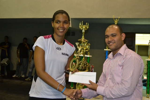 Diez fueron las unidades femeninas que representaron a la Policía Nacional de Panamá ante los juegos de voleibol gubernamental, llevándose el triunfo al ocupar el primer lugar del campeonato, luego de derrotar al equipo del Ministerio Público. Las ganadoras pertenecientes a la Dirección de Investigación Judicial y otras direcciones dentro de la Policía Nacional disfrutaron la victoria junto a sus compañeros y oficiales que presenciaban el partido en la ciudad deportiva Kiwanis. Estas valiosas jugadoras que tienen que compartir su tiempo en ser esposas, madres y funcionarias de seguridad, se esforzaron por varias semanas en entrenar y lograr coronarse campeonas al competir con otros equipos como el Ministerio Público, Contraloría General de la República de Panamá, Autoridad Nacional de Aseo, Universidad de Panamá y la Autoridad del Canal de Panamá. Entre caídas, errores y a veces desazones con el árbitro cada equipo demostró su fortaleza, su trabajo en equipo y sobre todo una buena coordinación en la cancha; pero como en todo juego solo hay un primer puesto, este lo ocupó la Policía. El Ministerio Público y la Autoridad del Canal de Panamá ocuparon el segundo y tercer puesto sucesivamente. El Director General de la Policía Nacional Julio Armando Moltó y el Director Nacional de Investigación Judicial comisionado Manuel Castillo extendieron felicitaciones a las jugadoras y celebraron junto a ellas el trofeo. Felicidades!!! |