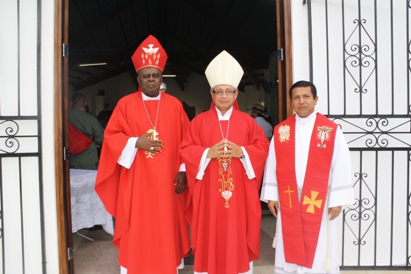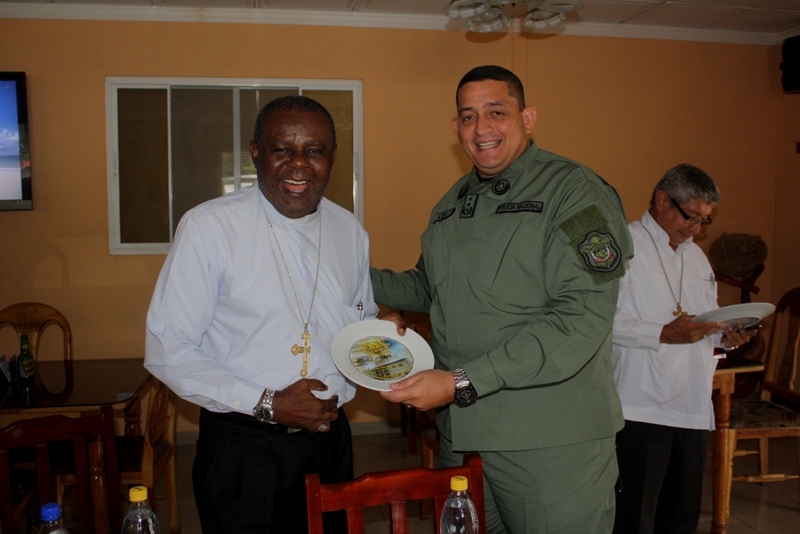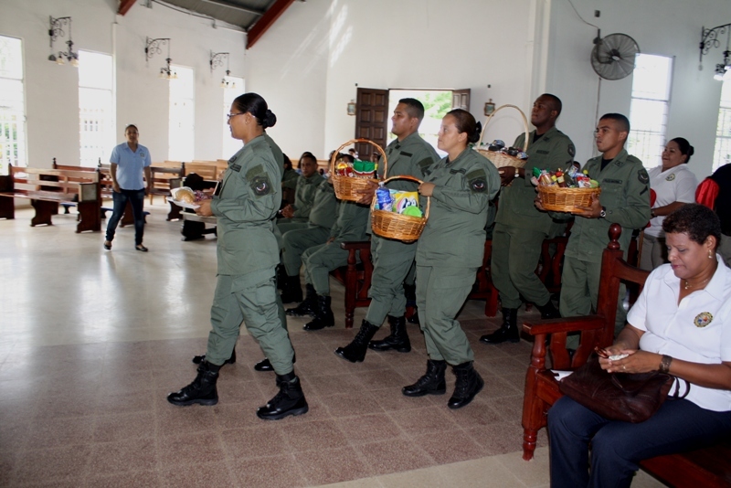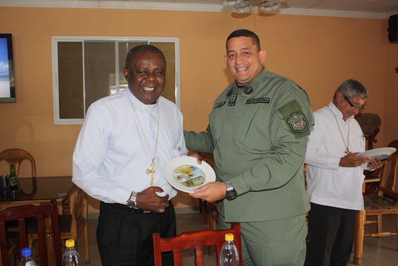 En el marco de la celebración de los 77 años de aniversario de la Zona de Policía de Coclé, el viernes 20 de septiembre se llevaron a cabo varios eventos, entre ellos la misa ceremonial de bendiciones para la zona realizada en la Catedral de Chigoré de Penonomé. La eucaristía fue presidida por Monseñor Pedro Hernández, obispo del Vicariato Apostólico del Darién y obispo encargado de la Capellanía Nacional de todos los estamentos de seguridad Pública, además se contó con la presencia del Monseñor Uriach Ashley de la provincia de Coclé y el padre Edilberto Ortiz capellán de la Zona de Policía. En la ceremonia religiosa se encontraban el jefe de la 2da zona policial el Comisionado Miguel Ávila de Los Santos, el Subcomisionado Teófilo Moreno, el mayor Doryam Espitía, el mayor Manuel Bonome, Capitana Ana Cajar, unidades y público que acompañó en tan magna celebración. Por su parte, el Jefe de la 2da Zona Policial el Comisionado Miguel Ávila de Los Santos felicitó a las unidades, por la labor que desempeñan y los exhortó para que continúen con ese ímpetu de trabajo, resaltó la gestión que viene realizando la Zona de Coclé, y valoró el compromiso puesto de manifiesto en cada una de las decisiones y acciones que se toman en pos de la institución. Posteriormente, las unidades se trasladaron al cuartel sede en Penonomé donde recibieron un pequeño brindis. De igual manera, el Comisionado Miguel Ávila de Los Santos, aprovechó la ocasión para hacer un presente a los capellanes que visitaron las instalaciones del cuartel en un día tan importante para la zona. También, se realizó entrega de canastilla, al primer bebe recién nacido, que nació el día 20 de septiembre, esta tarea fue llevada por el Capitán David Arroyo de la 2da Zona Policial, quien entregó la canastilla a la señora Nilka González y a su niño que nació a las 10: 00 de la mañana de ese día, muy felices los padres del bebe agradecieron a la Policía Nacional por tan noble gesto. |