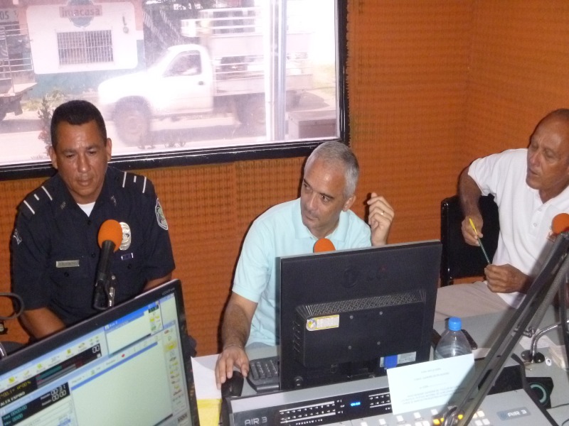 Con el propósito de brindarle a la ciudadanía recomendaciones que mejorarán su seguridad ciudadana, vecinal, y seguridad vial, unidades del departamento de Seguridad Ciudadana de la Zona de Policía de Los Santos, visitaron las radioemisoras de la provincia entre ellas Radio Mensabé. Todo esto con la finalidad de poder brindar a toda la comunidad medidas de seguridad e indicaciones que se implementarán tanto en las vías y en las comunidades allegadas al distrito de Guararé por motivo del Festival de La Mejorana. A las unidades policiales les correspondió dar respuesta a múltiples consultas que les realizaron vía telefónica los residentes del área con relación a los temas tratados. Se le facilitó los números telefónicos de las diversas área policiales de la zona a los radio escucha para demostrar de esta manera el compromiso de la Policía Nacional con la ciudadanía y no ser victimas de los dueños de lo ajeno, de igual forma no ser parte de la estadística de victimas por accidentes de transito.