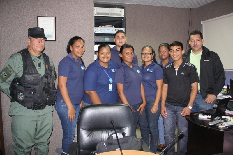Un grupo de nueve estudiantes de la Universidad Especializada de Las Américas de la carrera de Investigación Criminal y Seguridad así como del Colegio Ángel María Herrera del área de comercio visitaron las instalaciones de la Zona de Policía de Coclé y luego fueron invitados al Programa Radial de la Policía. Los jóvenes fueron recibidos por el Mayor Doryam Espitía, posteriormente se dirigieron a realizar un recorrido por las instalaciones donde recibieron asesoramiento por parte del Teniente Fernando Grenald del Departamento de Seguridad Ciudadana y unidades policiales de los distintos departamentos, siendo capacitados en todo lo que atañe a los diferentes programas preventivos y de seguridad que se llevan en las diferentes comunidades. Esta formación práctica será una de las bases posterior de su proyecto de fin de carrera. Los estudiantes fueron llevados a la Emisora Radio estéreo Mi Favorita en Penonomé, al programa radial de la Policía en tu Comunidad que se transmite todos los viernes a las 8:30, los jóvenes compartieron con los radioescuchas sus experiencias y expectativas de las funciones y el trabajo de los miembros de la Policía. Todos llegaron a la misma conclusión, la Policía Nacional trabaja por una sociedad más segura y exhortaron a la comunidad a incorporarse a los programas preventivos, los cuales son de importancia porque tienen como finalidad disminuir las incidencias delictivas y prevenir cualquier situación de riesgo. |