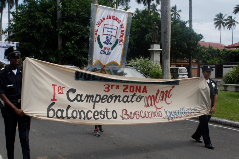 Estudiantes de 12 planteles educativos de la provincia de Colón participan de un campeonato de mini baloncesto, el cual es organizado por la Zona de Policía de esta provincia. El desfile por las principales calles de la provincia se realizó en la mañana de este lunes 30 de septiembre donde estudiantes de 6 a 12 años participaron muy contentos y con ganas de llevarse la copa a sus planteles. Luego del desfile se realizó un acto en las instalaciones de la zona, donde el subcomisionado jefe, Porfirio Justavino, le dio la bienvenida a los participantes de las diferentes escuelas, también señaló que la Policía realiza este tipo de competencias con el fin de que los niños comparten entre si y mantenerlos alejados de las calles. En el mes de julio se realizó un campeonato de fútbol con niños y niñas de diferentes coif. Esta actividad la organiza la Policía Nacional en coordinación con la Dirección Provincial de Educación y la alcaldía del distrito de Colón y el PROSI. En el campeonato participan niños de 6 a 12 años de escuelas como San Vicente De Paúl, Porfirio Meléndez, República de Bolivia, la Escuela Kuna, Juan Antonio Enrique, y Pablo Arosemena, entre otras.