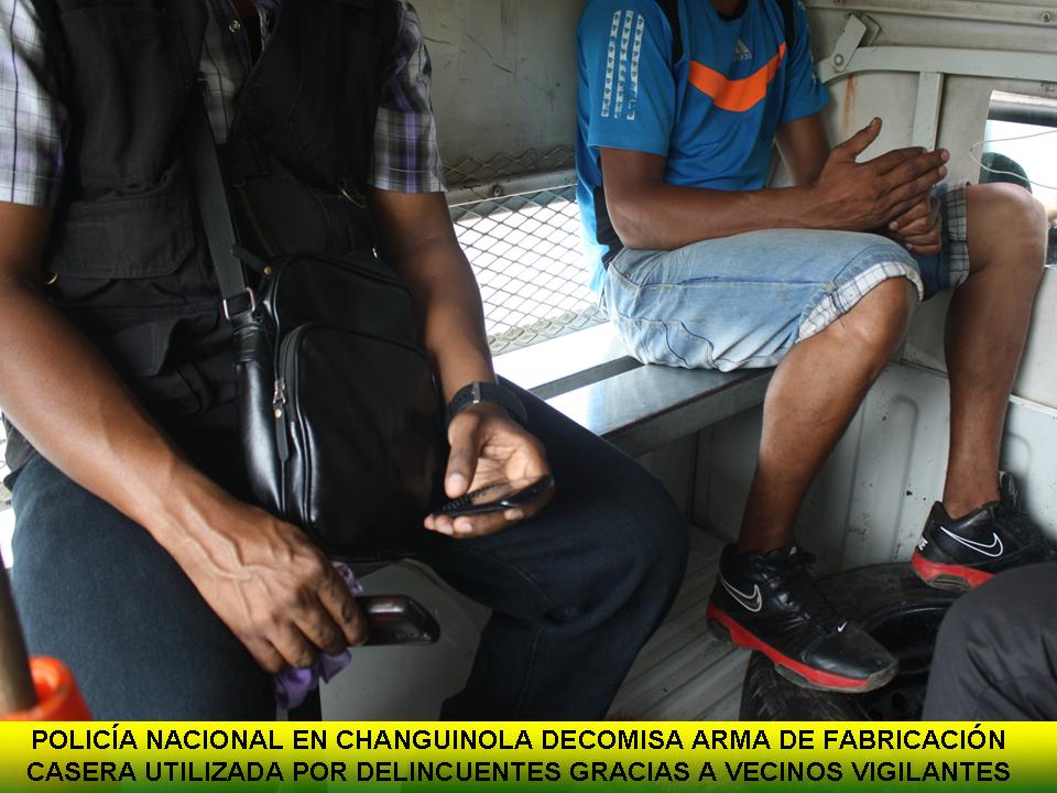 A las 2:00 de la tarde de hoy martes, miembros de los programas Vecinos Vigilantes de Changuinola, anónimamente denunciaron a la Policía Nacional que habían observado cuando un sujeto sospechoso ocultaba un objeto que parecía un arma de fuego, en el patio trasero de un lote baldío ubicado en el Empalme. Al lugar acudieron unidades de la Subdirección de Información Policial (DIP.), quienes logran ubicar un arma de fuego de fabricación casera hecho para detonar cartuchos de escopeta calibre 12, oculto en un saco color negro dentro de un lote baldío. Los vecinos observan al sospechoso y gracias a las descripciones dadas se logra dar con la aprehensión de un sujeto de 22 años de edad presuntamente propietario del artefacto. Fue retenido y será puesto bajo órdenes de las autoridades correspondientes. |
