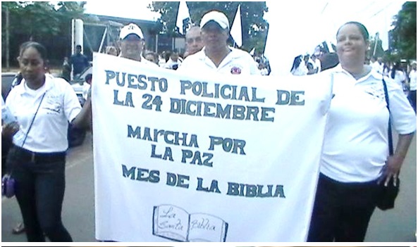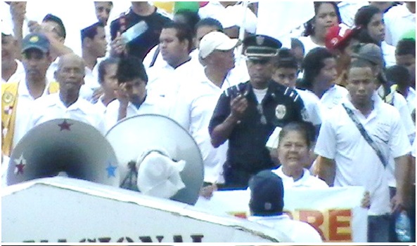 La Zona Metropolitana Área Este participó en la Marcha por la Paz que se realizó en el corregimiento de la 24 de Diciembre, donde estuvo presente el representate de Corregimiento Nelson Vergara, además de miembros del Club de la teletón 20-30 e integrantes de las escuelas del área. Docentes y estudiantes de las escuelas 24 de diciembre; Santa María de los Ángeles, Rubén Darío Paredes, Esperanza Arriba; Unión Centroamericana; Centro Básico General Francisco de Miranda; la Escuela Jeptha B. Duncan y el Centro Básico General participaron de esta marcha por la paz. También estuvieron presentes miembros de la escuela Francisco de Miranda del Centro Educativo Bill el plantel Ricaurte soler, la escuela Buen Pastor además de representantes de las Iglesias Evangélica y Católica. Esta marcha por la paz que tuvo como objetivo el cese a la violencia entre grupos, inició en la junta comunal de la 24 de diciembre y culminó en el Centro comercial el bombillo ubicado en la 24 de Diciembre. |