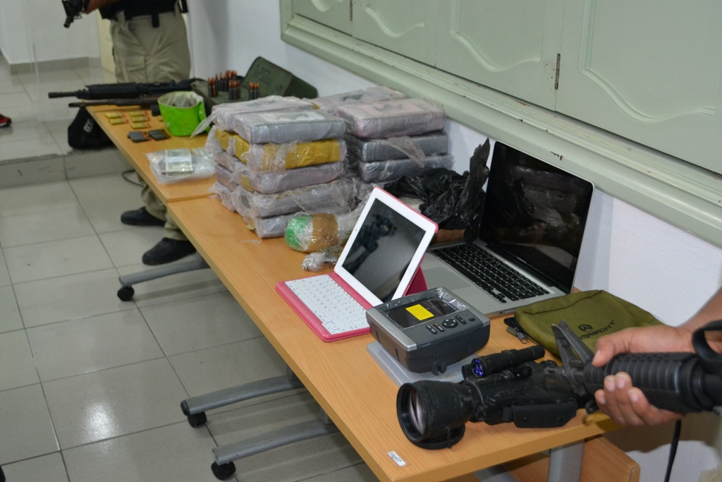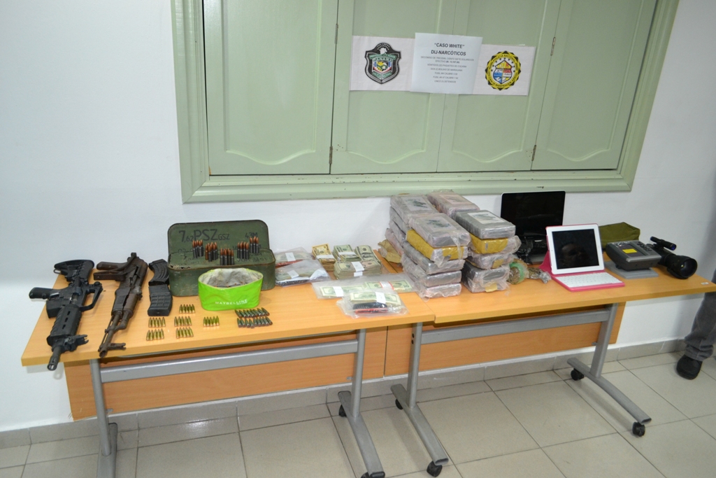 El allanamiento a un apartamento durante un fuerte operativo puso al descubierto una red delictiva implicada en tráfico de drogas y armas. Hay cinco detenidos, entre ellos dos mujeres. La Dirección de Investigación Judicial (DIJ) de la Policía Nacional restringió los planes de una red de panameños dedicados a delinquir y traficar sustancias ilícitas desde el lugar que pensaron, era su guarida. El desarrollo de la operación denominada ‘White’ conformada por Unidades de Narcótico de la DIJ se venía desarrollando desde hacía tiempo con el seguimiento y vigilancia de peligrosos elementos criminales que operaba desde un apartamento de un edificio ubicada en Avenida Balboa. La habitación de estas personas fue allanada por las unidades de Narcótico de la DIJ en conjunto con el personal de la Fiscalía de Droga obteniendo como resultado: De este procedimiento quedaron cinco personas de nacionalidad panameña detenidas; tres del sexo masculino de edades de 34, 36 y 37 años y dos femeninas de 25 y 26 años de edad, todos puestos a disposición de la Fiscalía de Droga. |
