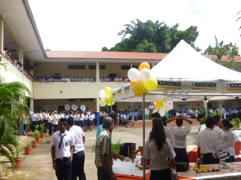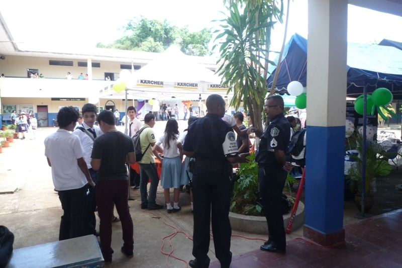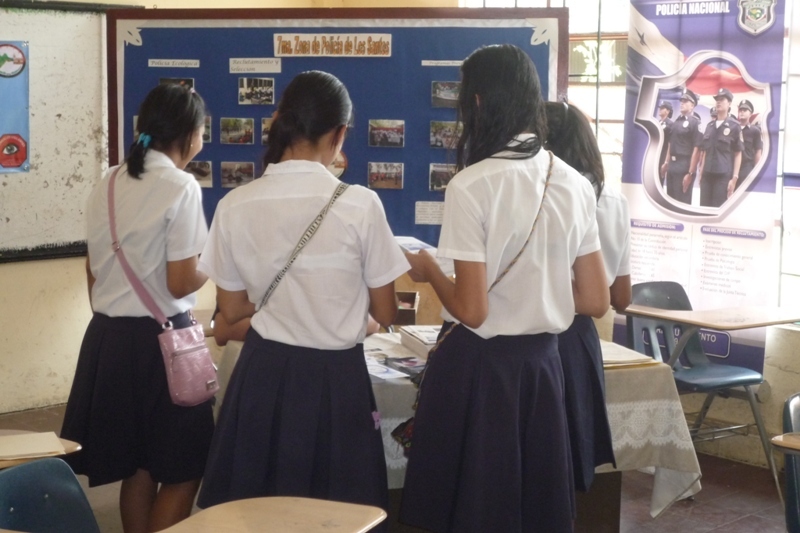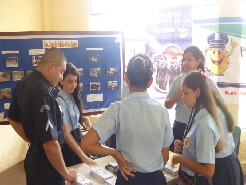 Con el propósito de interesar a los estudiantes en formar parte de la fila de la Policía Nacional, la Zona de Policía de Los Santos participó en la III Feria Estudiantil organizada por el Colegio Manuel María Tejada Roca del distrito de Las Tablas, en el marco de la celebración de su LXXI Aniversario, llevada a cabo en el patio principal del plantel educativo. Los departamentos de Reclutamiento, Psicología y Trabajo Social, son los responsables de la selección de los jóvenes a ingresar a la Policía Nacional, estuvieron presentes en el feria en representación de la zona policial. Se contó además con un Stand donde se les hizo entrega a los visitantes de boletines informativos de las carreras policiales, se les entregó también el periódico informativo Acción Policial, se mostraron videos informativos de la institución y se les informó de los beneficios que se obtienen. |