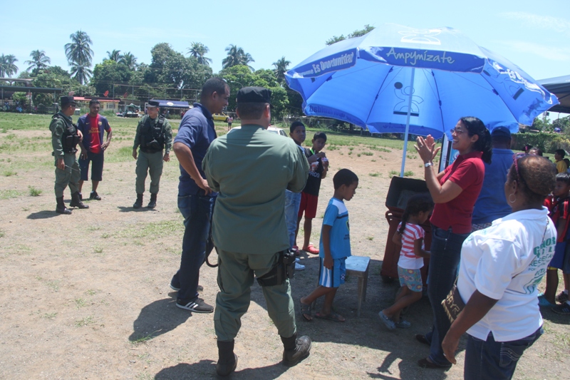 Los residentes de la comunidad de Veracruz disfrutaron de presentaciones artísticas y folklóricas, durante una feria familiar en la que compartieron con las unidades de la Policía Canalera. Durante la actividad los asistentes adquirieron productos básicos a precios más económicos y recibieron atención de salud; además los más pequeños con mucha alegría le dieron la bienvenida a los canes de la Unidad Canina de la Policía Nacional, que se ganaron el aplauso de los presentes por sus bien logradas destrezas. Mientras que la Murga de la Policía amenizó el ambiente. También hubo presentaciones de bailes típicos y declamaciones en las que participaron estudiantes de las escuelas del sector y se proyectaron películas de interés educativo a cargo de la compañía guatemalteca de Cine Móvil al aire libre. |