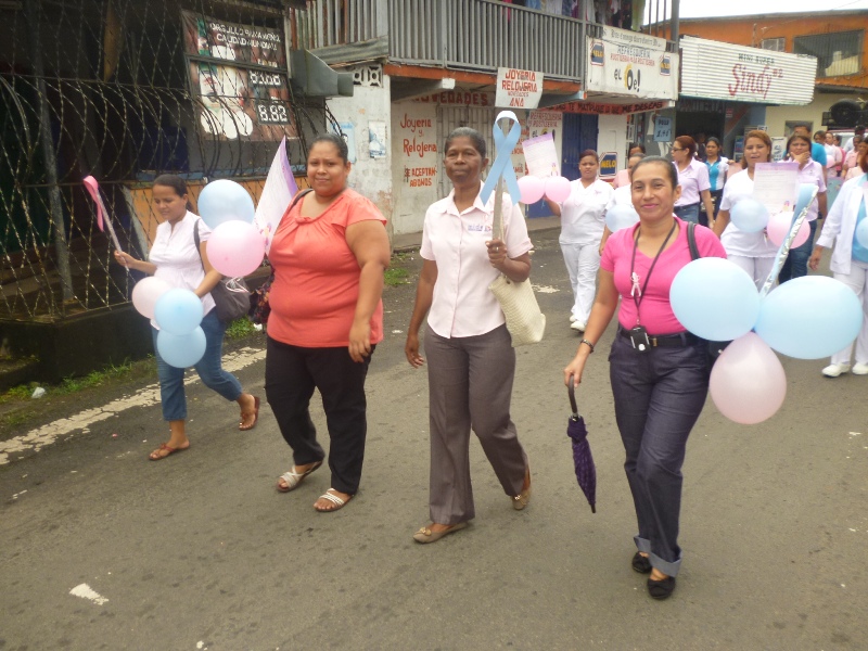 Con la finalidad de hacer conciencia en la población para que se realicen con tiempo los exámenes para prevenir el cáncer de mama y de próstata, la Zona de Policía de Panamá Este participó junto a otras instituciones públicas del distrito de Chepo una caminata promoviendo el mes de la Cinta Rosada y Celeste. La caminata se inició desde los cuatro altos del distrito, recorriendo las principales calles hasta llegar a la iglesia de San Cristóbal de Chepo donde se realizó una misa para bendecir tan importante actividad. La campaña de la Cinta Rosada y Celeste es un evento a nivel mundial que busca que tanto hombres como mujeres acudan a los centros de salud a realizarse sus exámenes y así prevenir el cáncer de mama y de próstata que es unas de las principales causa de muerte. |