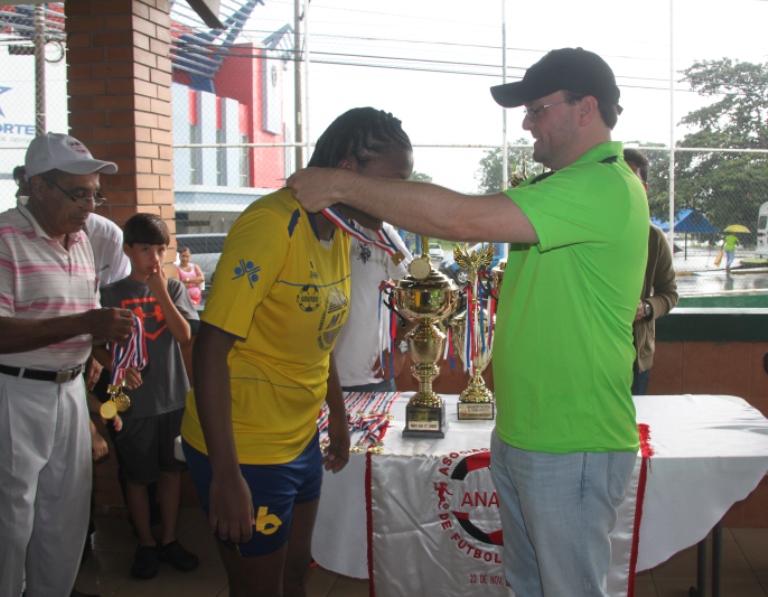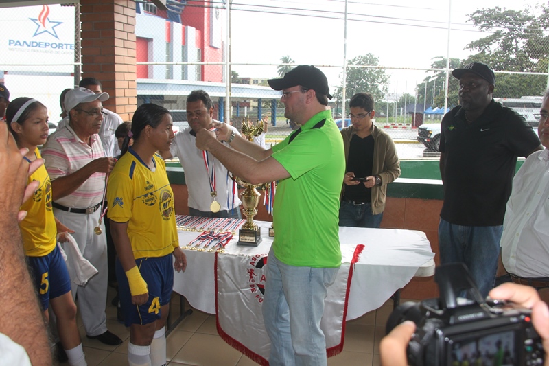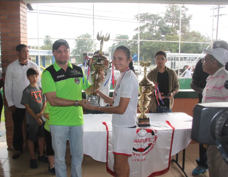 El equipo femenino de futbol de la Policía Nacional, El Atlético Nacional resultó subcampeón de la Copa que patrocina la Asociación Nacional de Fútbol Femenino, Anafufe, luego de un reñido partido que culminó tres goles a uno y que se realizó en la cancha Luis Ernesto “Cascarita” Tapia, ubicada al lado del Complejo Deportivo Rommel Fernández de la Ciudad Deportiva Irving Saladino ubicada en Juan Díaz. Osvaldo Blackman, Presidente de la Asociación Nacional de Futbol Femenino, Anafufe, explicó que Los equipos clasificados para la final fueron El Atlético Nacional, organizado y patrocinado por la Policía Nacional y el equipo Navy Bay, el cual revirtió el resultado del año pasado, cuando el Atlético Nacional les ganó quedando de campeones. Por su parte, el Director de la Policía Nacional, Ingeniero Julio Moltó reconoció que las integrantes del equipo de la Policía se esforzaron al máximo, entregando su profesionalismo y dando lo mejor de sí, a pesar de la presión del equipo contrario. “La verdad es que las muchachas hicieron que nunca nos aburrimos los fanáticos que estábamos en las gradas”, comentó Moltó. Para el Ingeniero Moltó lo importante es que la Policía apoya y patrocina el deporte, porque eso es lo que mantiene a nuestros jóvenes alejados de las calles haciendo lo que no se debe. |
