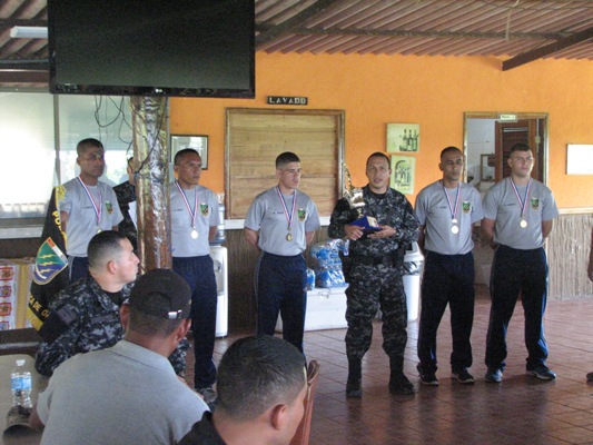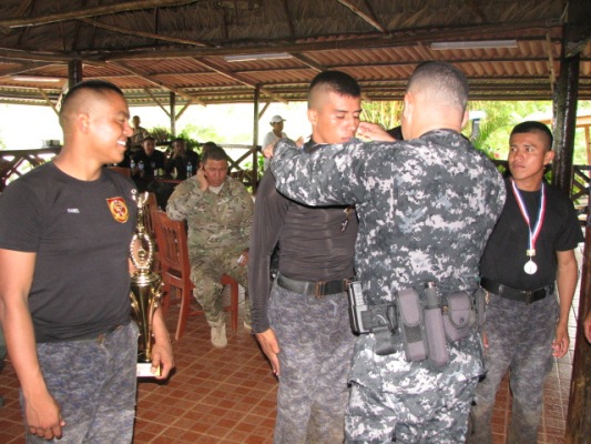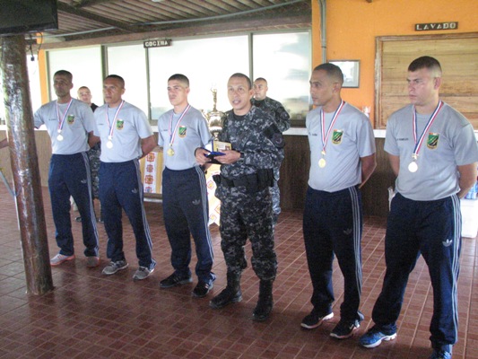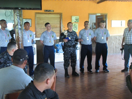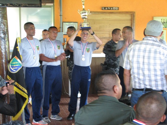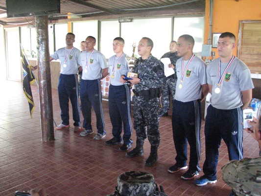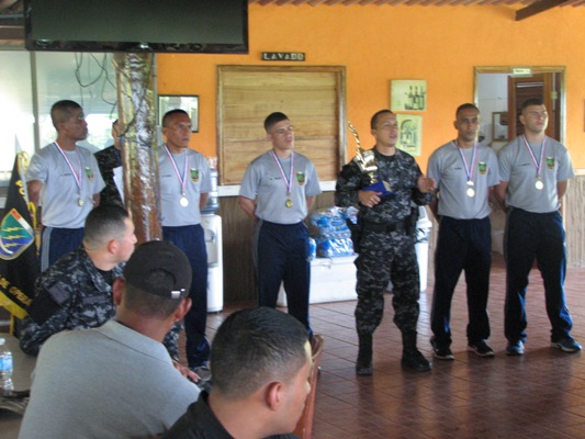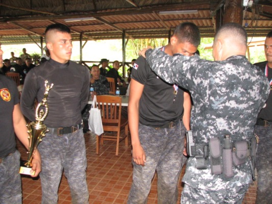 Competencias, misa y convivio, fueron parte de las actividades que desarrollaron las unidades policiales pertenecientes a la Unidad Táctica de Operaciones Antidrogas (UTOA), con el fin de conmemorar su 3º aniversario que cumplió esta unidad de mantenimiento de operaciones fluviales costeras, entre otros servicios el pasado 1 de octubre. La ceremonia se realizó en la iglesia Don Bosco, ubicada en Calidonia, donde fue catalogado como un día especial que tienen estas unidades haciéndoseles un reconocimiento a la trayectoria que tiene esta dependencia de la Policía Nacional. Dentro de las actividades que realizaron para festejar su aniversario, estuvo la competencia denominada “Esfuerzo o Marcha Forzada”, la misma consistió en correr 7km con una mochila de 50 libras, carrera que se desarrolló en áreas de difícil acceso, en la provincia de Colón; resultando ganador el equipo de la UTOA, en la misma habían 20 participantes entre ellos de explosivos, unidad canina y la escolta. Los ganadores recibieron medallas, premios, bonos y trofeos, para cerrar con broche de oro se disputaron un partido de softball, llevado a cabo en el Complejo Deportivo Club Hebreo, en la 24 de Diciembre, donde el actual director de los Servicios Especiales Policiales, subcomisionado Luís Jiménez, hizo la entrega de reconocimientos a sus unidades. |