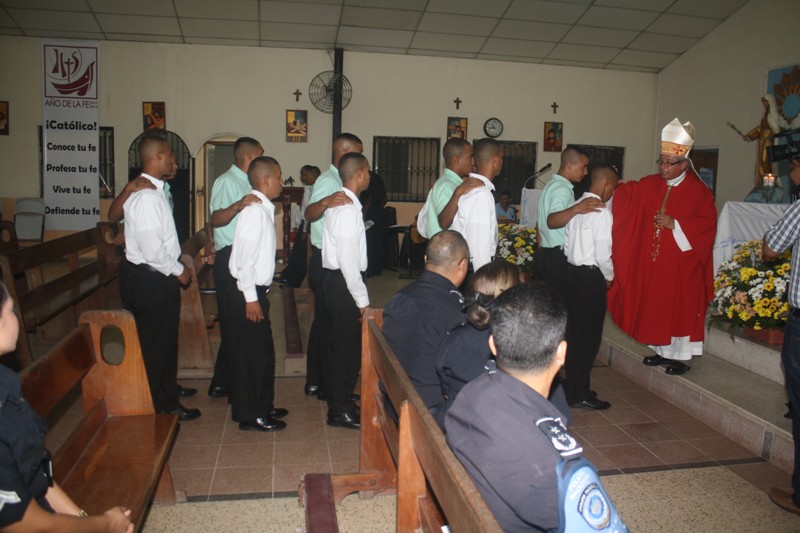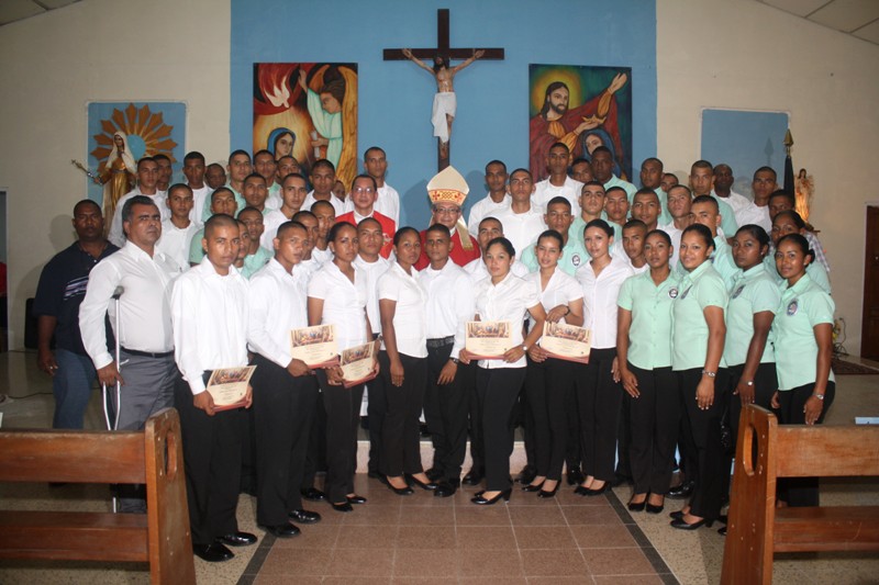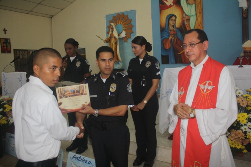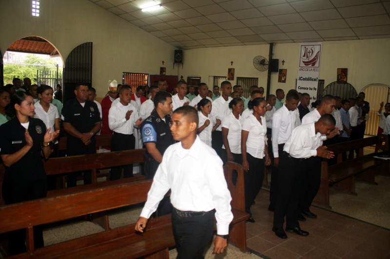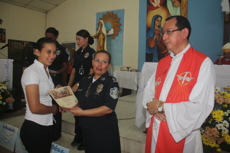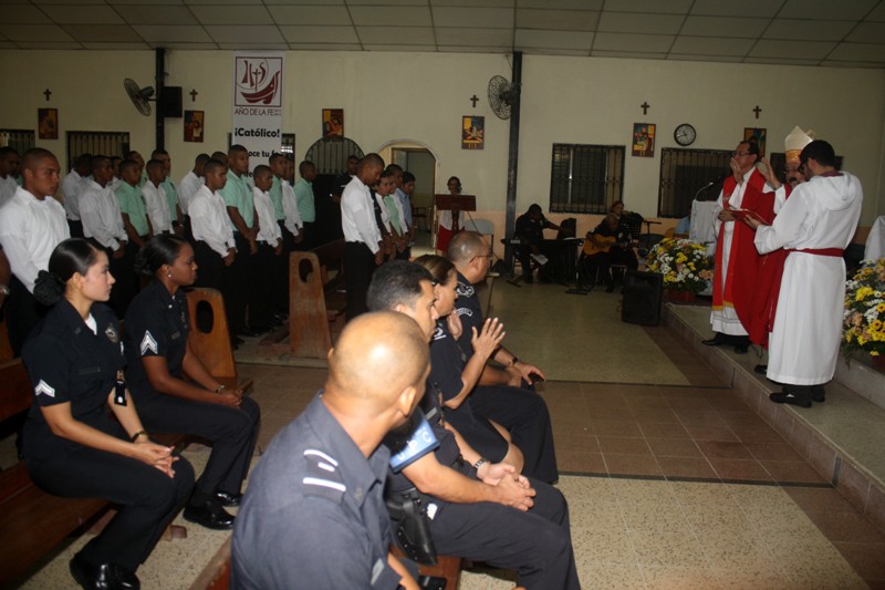 Con la imposición de manos y la unción con oleos sagrados, unos 28 estudiantes de la Academia de Policía Presidente Belisario Porras aceptaron voluntariamente la fe de Cristo, mediante una ceremonia de confirmación realizada este martes 15 octubre en la iglesia María Reina. Durante la ceremonia estos jóvenes agentes que conforman la promoción 71 se comprometieron en servirle a Dios, uniéndose más a él y a la iglesia católica, fortaleciendo su fe y vida espiritual. La Policía Nacional promueve el fiel cumplimiento de los sagrados sacramentos organizando estas ceremonias que marcan un importante paso de iniciación cristiana. |