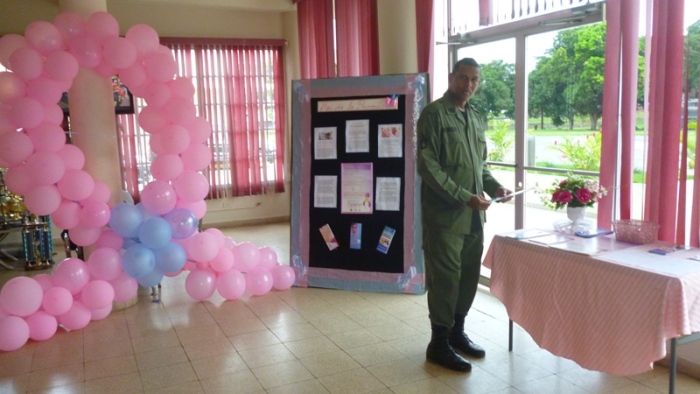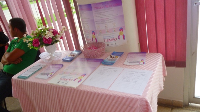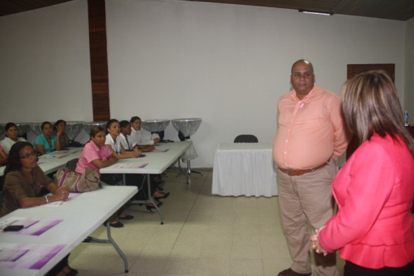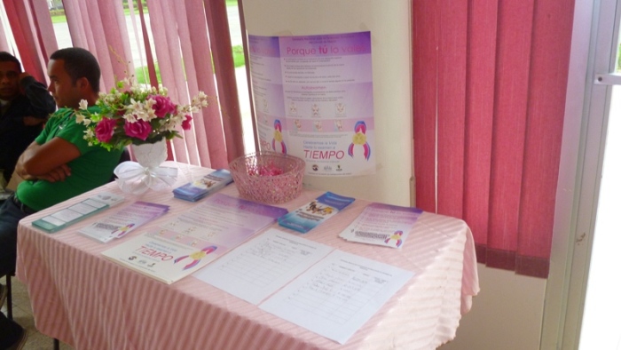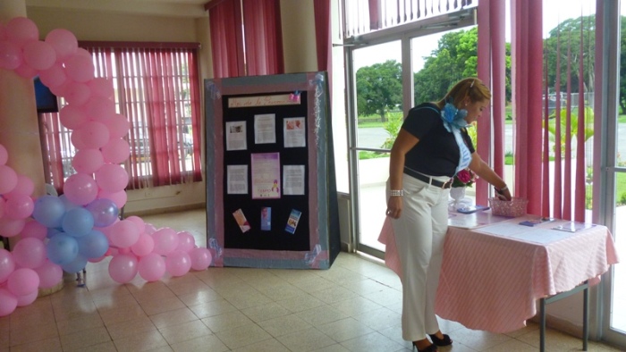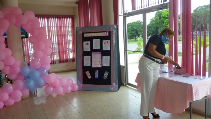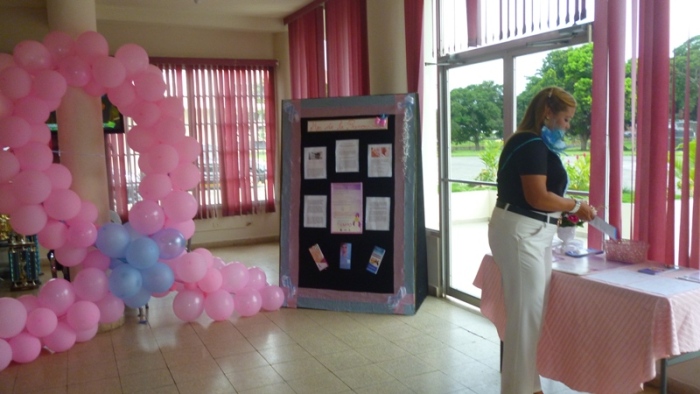 La cinta rosada y celeste es un símbolo utilizado por personas, compañías y organizaciones que se comprometen a crear conciencia sobre el cáncer de mama y para concienciar sobre el cáncer de próstata, esta vez la Dirección Nacional de Información Policial (DNIP), realizó varias actividades para conmemorar esta campaña anual, entre ellas las decoraciones de las instalaciones. Con la venta de dulces funcionarios de esta dependencia de la Policía Nacional, recaudaron fondos a beneficio del Hospital Oncológico, además de variadas decoraciones, entre ellas murales, también se dictaron docencias, por parte de las autoridades del Ministerio de Salud, las mismas contaron con la participación de 60 personas, 30 de ellas femeninas. Este mes se realizan muchas actividades en el ámbito nacional, con el fin de que cada día más las mujeres aprendan el valor de hacerse su examen a tiempo, pues así pueden prevenir esta enfermedad. Es por ello que la DNIP, ofreció exámenes de mamografías y de la próstata en el Hospital San Fernando, todo esto bajo la coordinación del departamento de trabajo social de la Dirección Nacional de Información Policial. Con la aprobación del comisionado, Jorge miranda, Director de la Dirección Nacional de Información Policial, y el respaldo de la subcomisionada, Maribí González, de Recursos Humanos, se ofreció un sencillo, pero significativo acto a las actividades correspondientes al mes de octubre. La trabajadora social, de la DNIP, Licenciada, Elizabeth Bernal, hizo énfasis en realizarse los exámenes a tiempo, no te quedes por fuera y acude a realizártelos.
