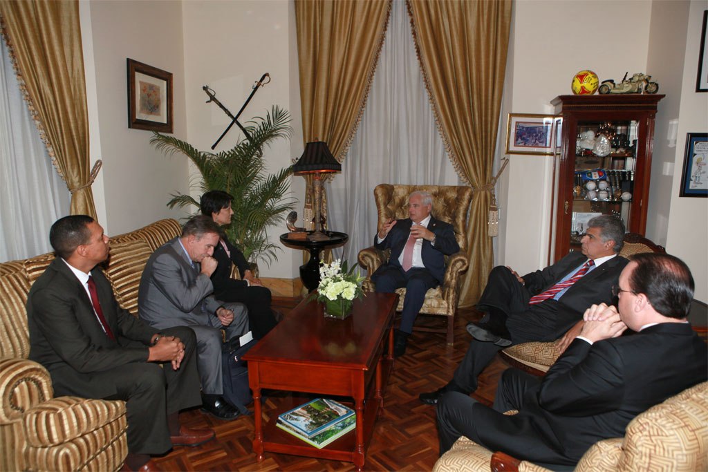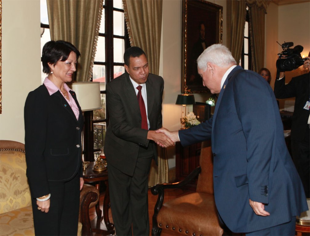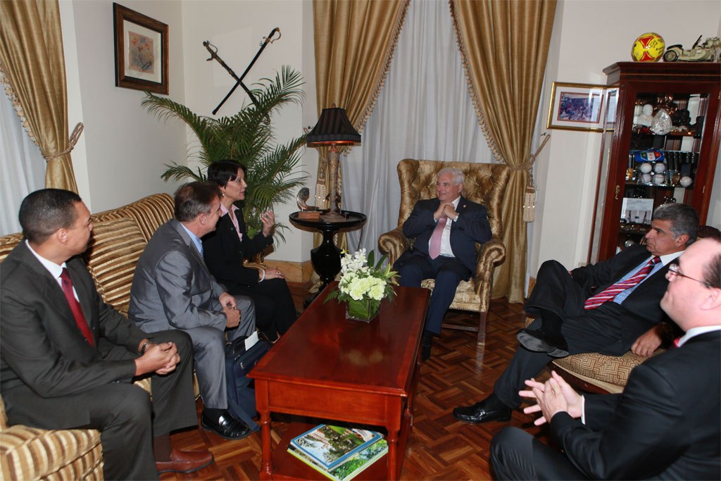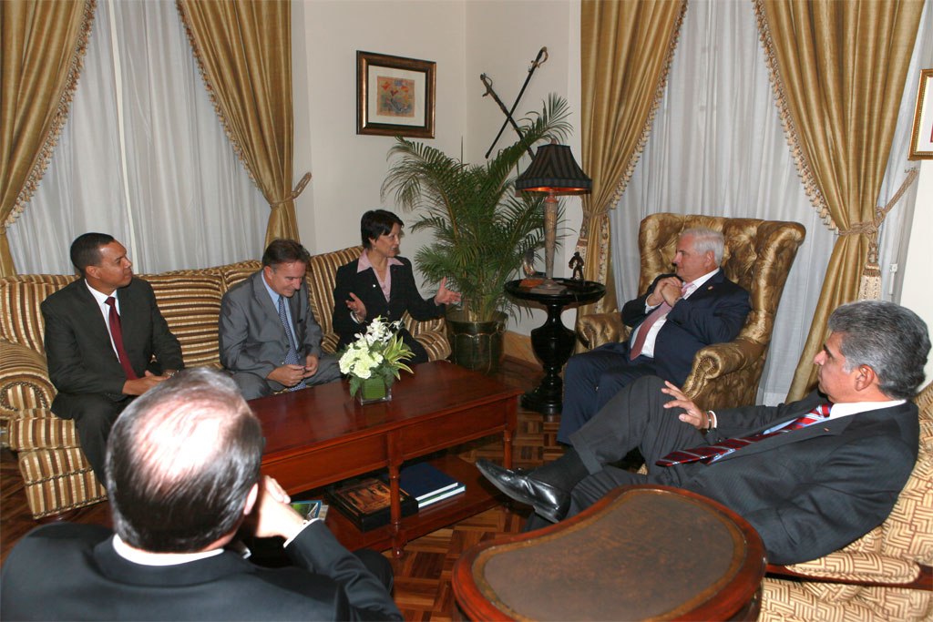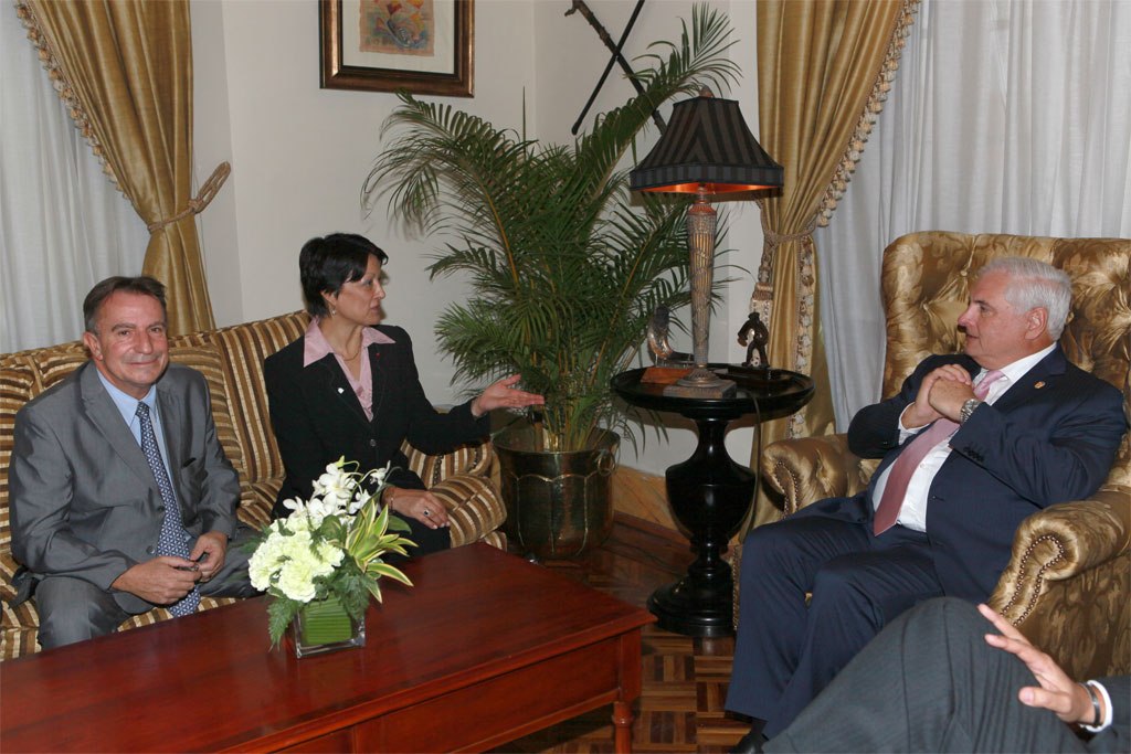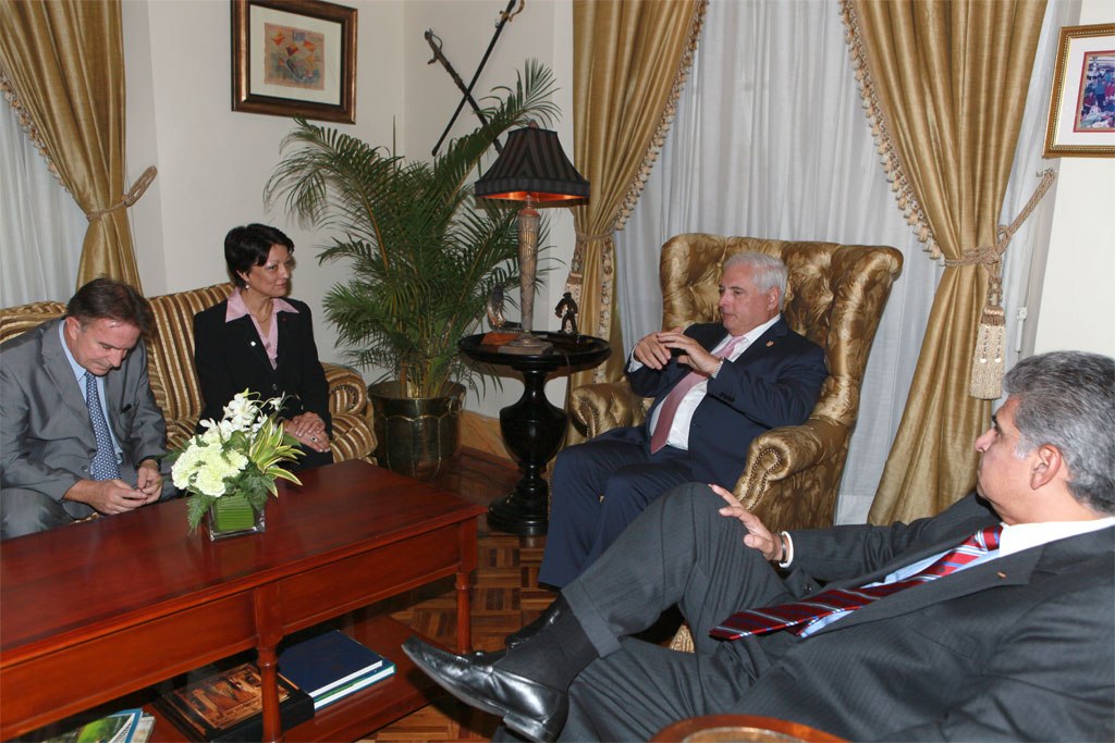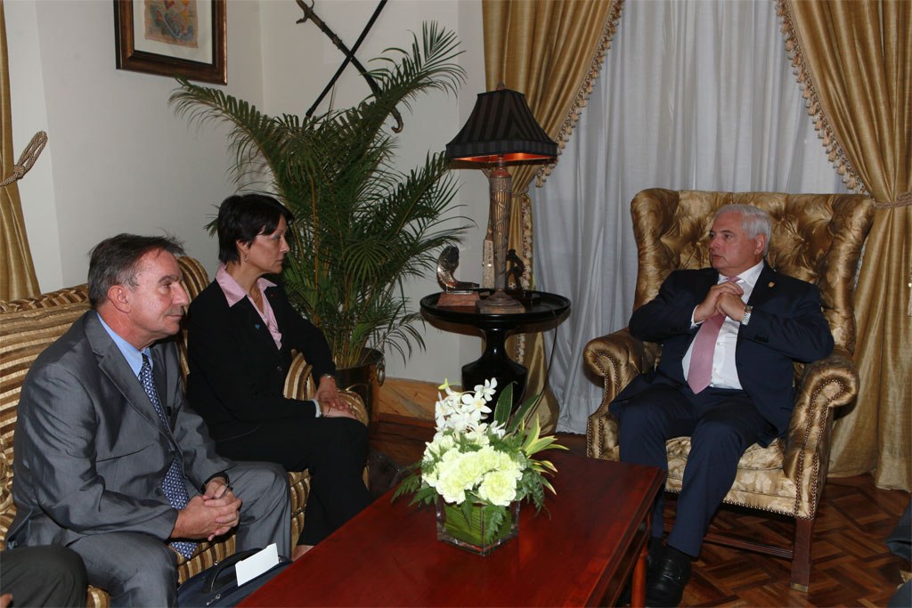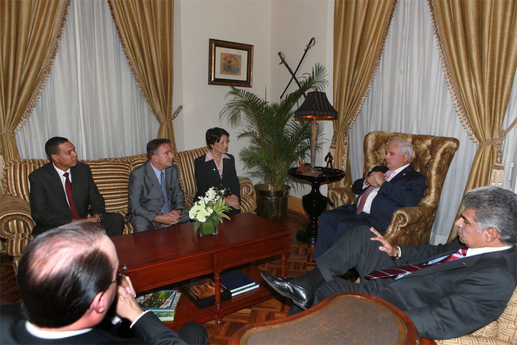 La Presidenta de la Organización Internacional de Policía Criminal Interpol, Mireille Ballestrazzi llegó de visita a Panamá este miércoles 16 siendo recibida en el Aeropuerto Internacional de Tocumen, por el subcomisionado Alexis Muñoz subdirector de Investigación Judicial y la capitana Gloria Silva Jefa de Interpol-Panamá. Tras la visita de Ballestrazzi a Panamá se reunió con el Excelentísimo señor Presidente de la República Ricardo Martinelli para tratar temas sobre la labor de esta organización de seguridad en cuanto a la lucha contra el narcotráfico y el crimen organizado. Entre los puntos tratados en la reunión con el Presidente Martinelli se habló sobre la cooperación policial de panamá a nivel regional e internacional incluyendo la cooperación a través de los canales de Interpol, cuya oficina en Panamá se encuentra en la sede de la Dirección de Investigación Judicial (DIJ) de la Policía Nacional. De igual forma se trataron, las actividades de Panamá en cuanto a la lucha contra el crimen organizado, particularmente sobre el tráfico de drogas, tráfico de armas y la lucha contra el crimen organizado, incluyendo el tema de pandillas. A esta reunión asistieron también; el Ministro de Seguridad Pública José Raúl Mulino, el Director general de la Policía Nacional Julio Armando Moltó, el subdirector de Investigación Judicial subcomisionado Alexis Muñoz y el jefe de gabinete de la señora Ballestrazzi Serge Antony. Ballestrazzi también visitó la Sede del Servicio Nacional Aeronaval (SENAN) donde se encuentra el Centro de Seguridad Operacional para Centroamérica, seguido asistió al Centro de Visitantes de Miraflores donde le fue explicada la función del Canal de panamá y tuvo la oportunidad de observar el paso de un crucero por aguas nacionales. Desde su llegada a Panamá, Ballestrazzi realizó diversas jornadas de reuniones en coordinación con la Oficina de Interpol-Panamá, finalizando su marcha la mañana de hoy viernes cuando viajó a Cartagena junto a la delegación diplomática que le acompañó. |