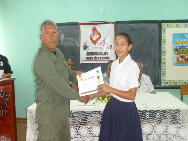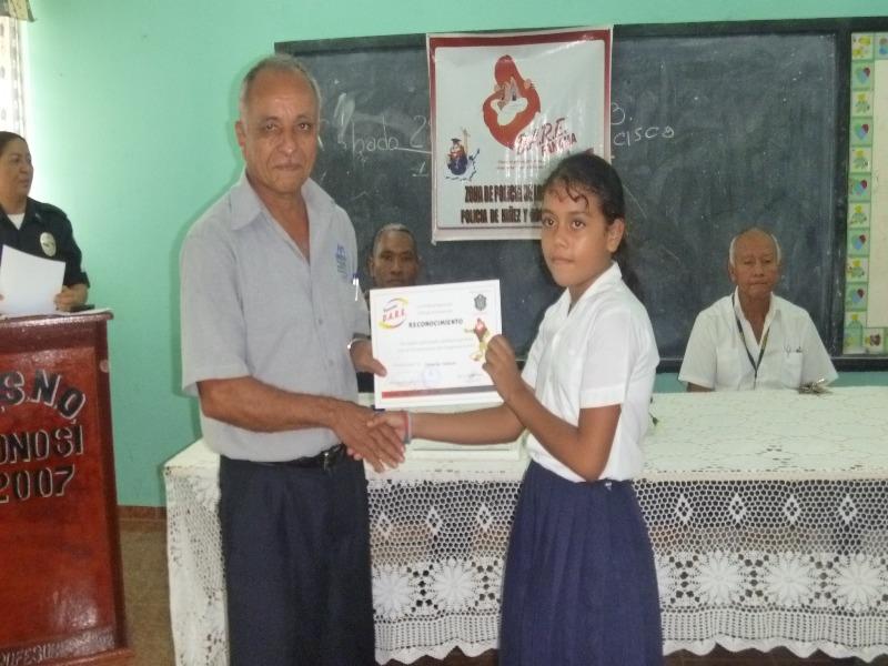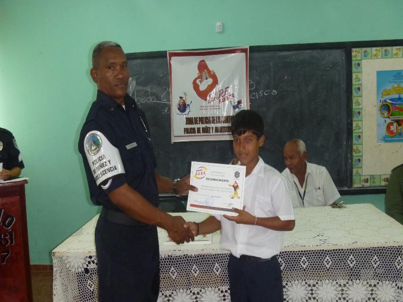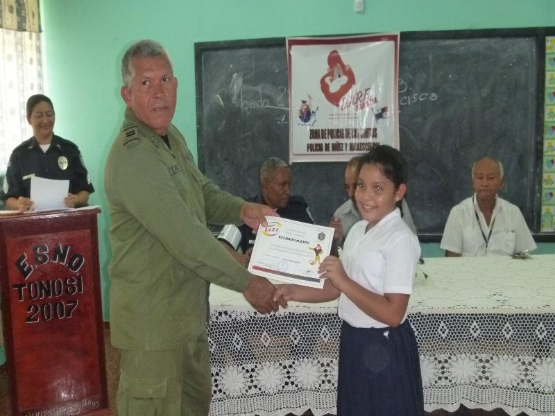 A lo largo de esta semana unidades del Departamento de Niñez y Adolescencia de esta zona, realizan graduaciones en los planteles educativos de Tonosì y Pedasi a los niños quienes recibieron capacitación del Programa DARE por parte del Sargento Luis Chepote, por un periodo de 10 semanas. Siendo beneficiadas con este programa la Escuela Rosa María Arcedo Angulo de Tonosì y la Escuela Plinio Moscoso de Pedasi.