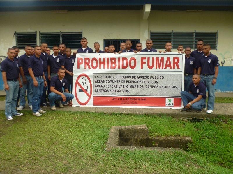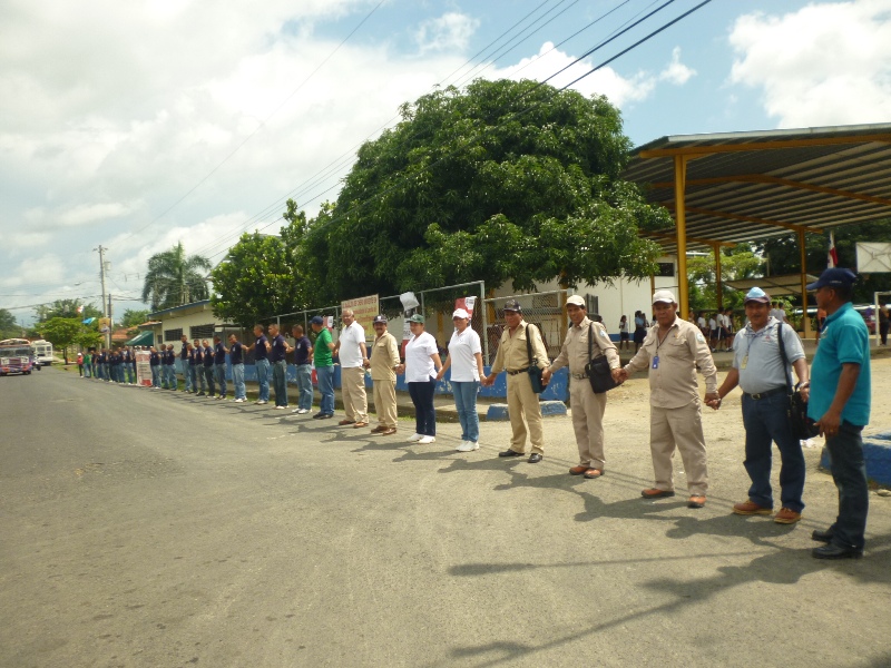 Los funcionarios que cooperaron con la limpieza, el MOP, MINSA y la comunidad realizaron una cadena humana para apoyar la campaña de no fumar.