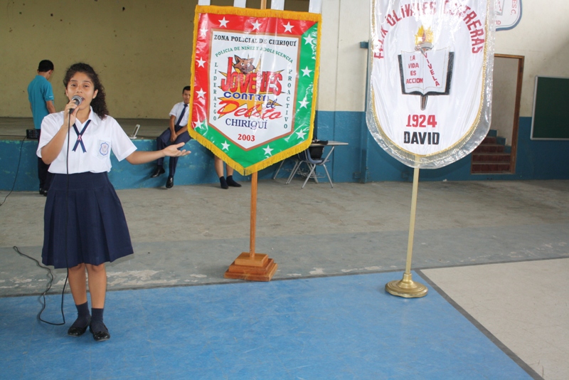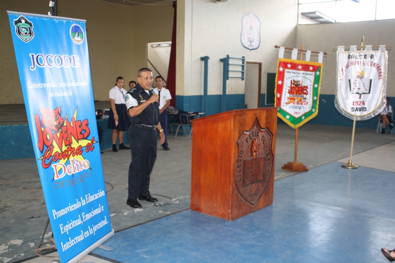 El Departamento de la Policía de Niñez y Adolescencia de la Policía Nacional en la provincia de Chiriquí, en el marco de su labor como cuerpo especializado en auxiliar y coordinar con las autoridades, la prevención, educación y protección de los jóvenes, realizó este 23 de octubre el primer lanzamiento oficial del primer grupo de Jóvenes Contra el Delito (JOCODE) en el Colegio Félix Olivares Contrera. Estos programas de desarrollo humano son dirigidos a jóvenes y adolescentes de los diversos centros educativos, para que vean la vida de forma diferente y puedan ser buenos profesionales.