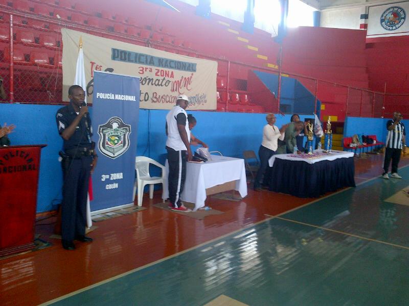 La Zona de Policía de Colón realizó este viernes 25 de octubre la ceremonia de clausura de la Copa de Mini Baloncesto Policía Nacional “Buscando Un Ramillete”, donde unos 25 colegios participaron de esta actividad. Dicho evento se desarrolló en el tabloncillo deportivo de La Arena Panamá All-Browm de la ciudad de Colón, con la intensión de invertir sobre nuestros niños y apostar por un futuro mejor, incentivando el deporte como medida para erradicar la violencia. Le correspondió al Subcomisionado Néstor de Sedas entregar la copa del primer lugar la Escuela Metodista y el segundo puestos se lo llevó la Escuela Villa Londra, también se entregaron medallas al jugador más valioso, disciplina ejemplar y la colaboración abnegada. La actividad deportiva contó con la colaboración del Ministerio de Educación “MEDUCA” y el Programa de Seguridad Integral “PROSI”.