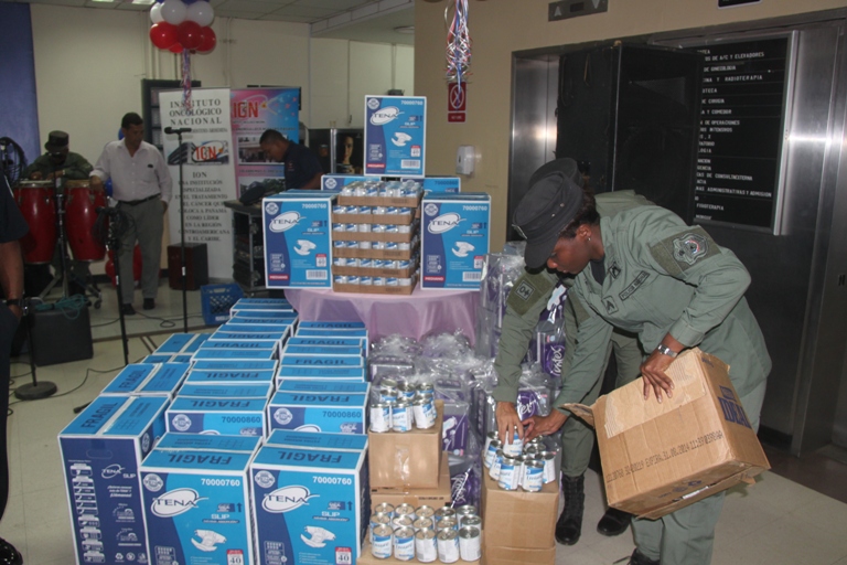Una significativa donación consistente en pañales desechables, toallas sanitarias nocturnas y leche Ensure realizó la Policía Nacional al Hospital Oncológico Nacional, reveló la Subcomisionada Elida Ortega, Jefa de los Servicios Médicos de la Dirección de Bienestar Policial y Familiar. En el acto estuvieron presente la Comisionada Mirta Mosquera, Jefa de la Dirección de Bienestar Policial y Familiar, y el Dr. Aníbal E. Villa-Real Cruz, Director General del Hospital Oncológico Nacional quien recibió formalmente la donación. La actividad también contó con una hermosa velada musical a cargo del Conjunto Voces y Cuerdas de la Policía Nacional la cual emocionó al público presente que empezó primero a cantar, luego aplaudir y finalmente a bailar. La voluntaria de Fundacancer Agnes Ivonne Brin, entidad que tiene más de 15 años de colaborar con el Hospital Oncológico, agradeció la donación efectuada de forma voluntaria por todas las unidades de la Policía Nacional a través de los “Viernes de Jeans” que se realizaron recientemente en esta institución policial. Igualmente resaltó el valor individual de cada uno de los útiles donados por la Policía Nacional, tras los tratamientos de quimioterapia. Por su parte, El Cabo Primero José Luis Atencio, miembro del Departamento de Trabajo Social de la Dirección Nacional de Investigación Policial, en representación del Comisionado Jorge Miranda realizó la donación de una cafetera al Banco de Sangre del Hospital Oncológico. |